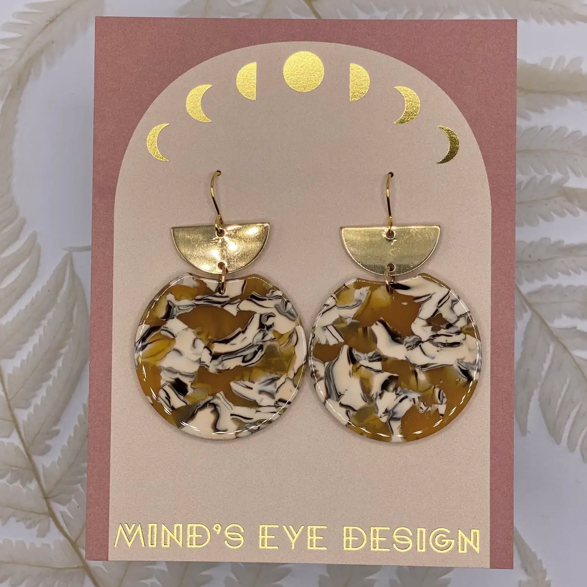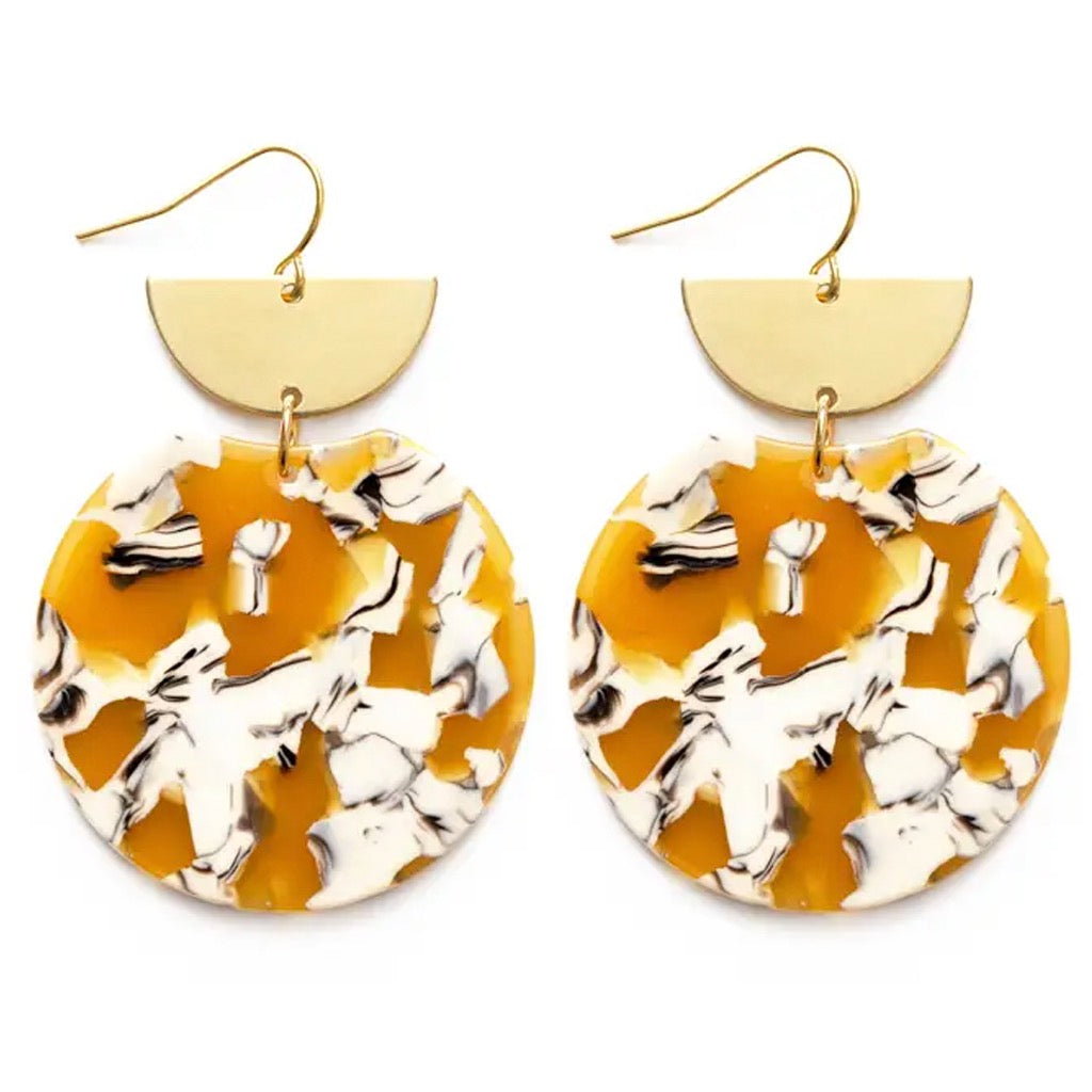 Pollock Earrings are made of acetate and brass with gold plated earwires.