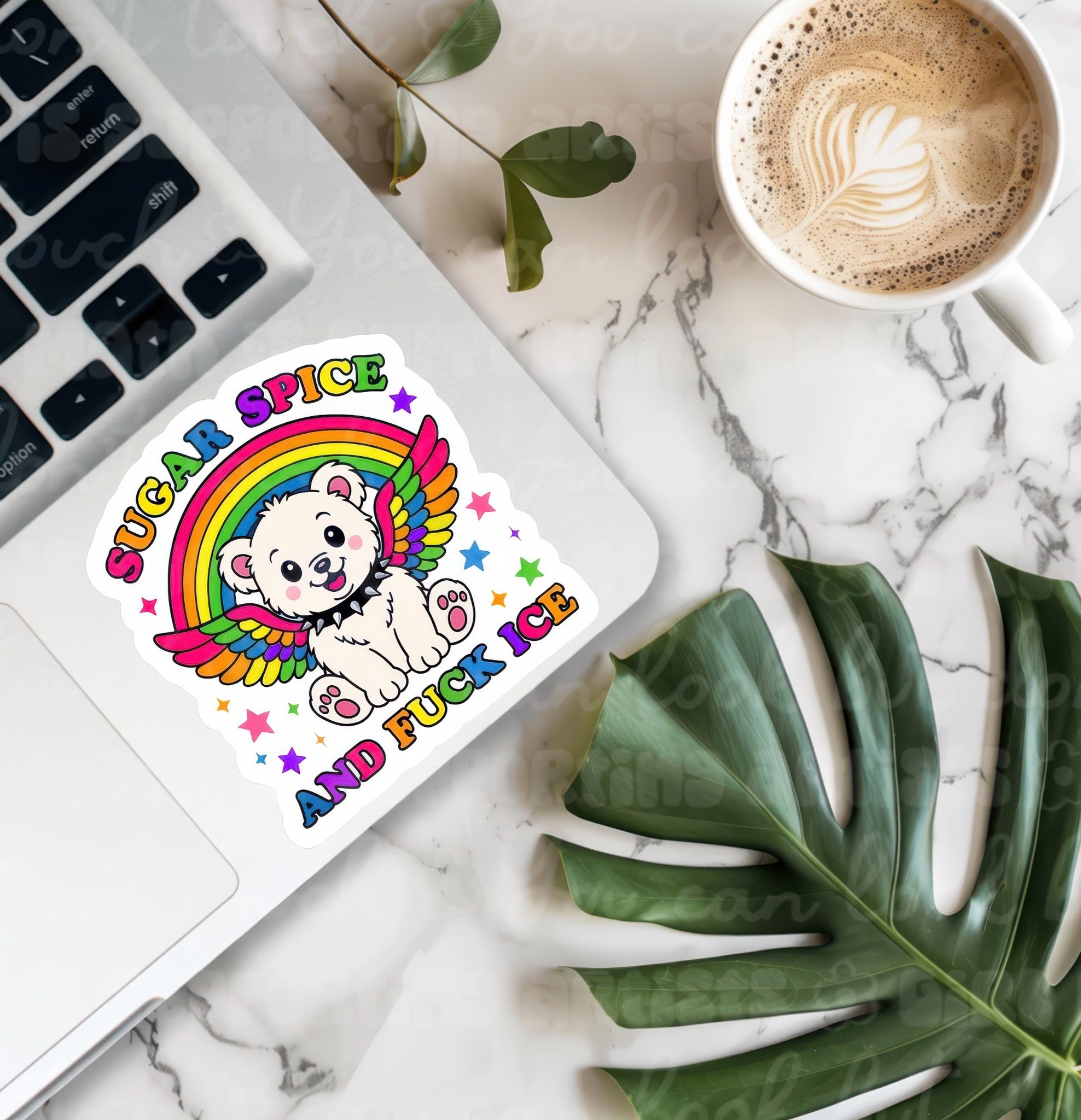 Sugar Spice & F*Ck Ice Sticker brings rainbow-bright sass with a cute bear and a not-so-sweet message that makes a bold statement.