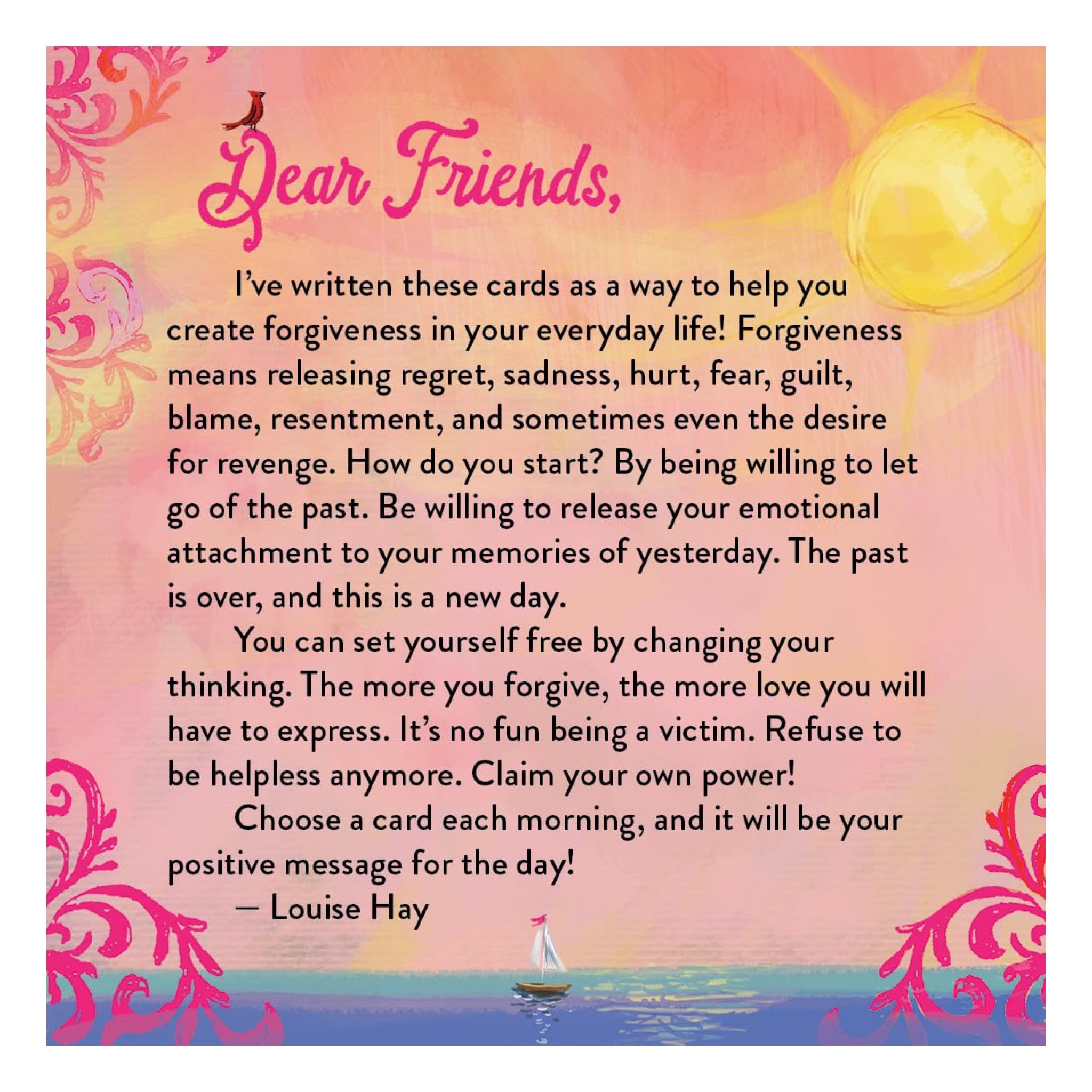 Find peace and freedom with Louise Hay’s Affirmations for Forgiveness, a set of cards designed to inspire emotional healing and self-love. Each affirmation encourages you to release regret, guilt, fear, and resentment while embracing compassion and new beginnings. Forgiveness is about letting go of the past and choosing joy in the present moment.