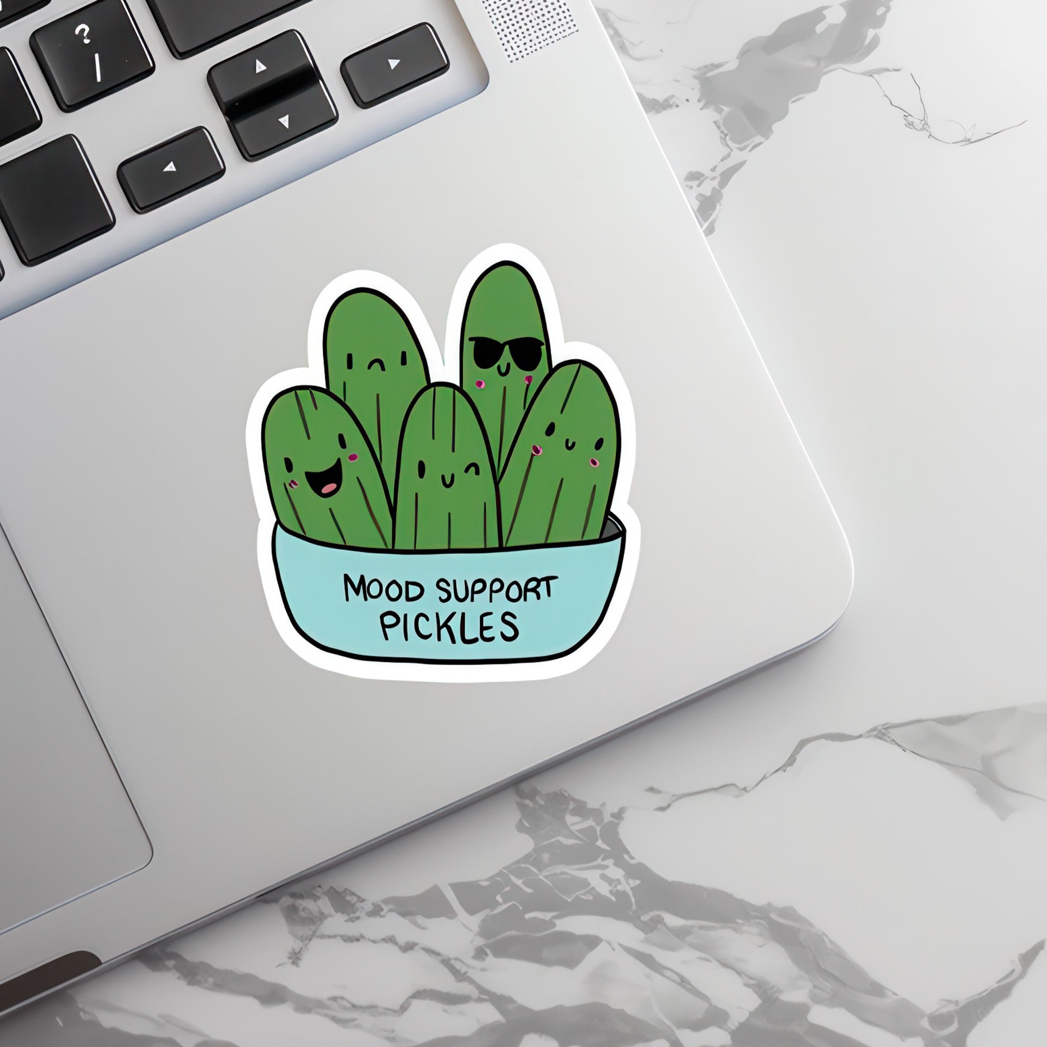 When life gets salty, call in the mood support pickles. This adorable vinyl sticker adds a pop of playful comfort to laptops, water bottles, planners, and more with durable, weatherproof quality made for everyday smiles.