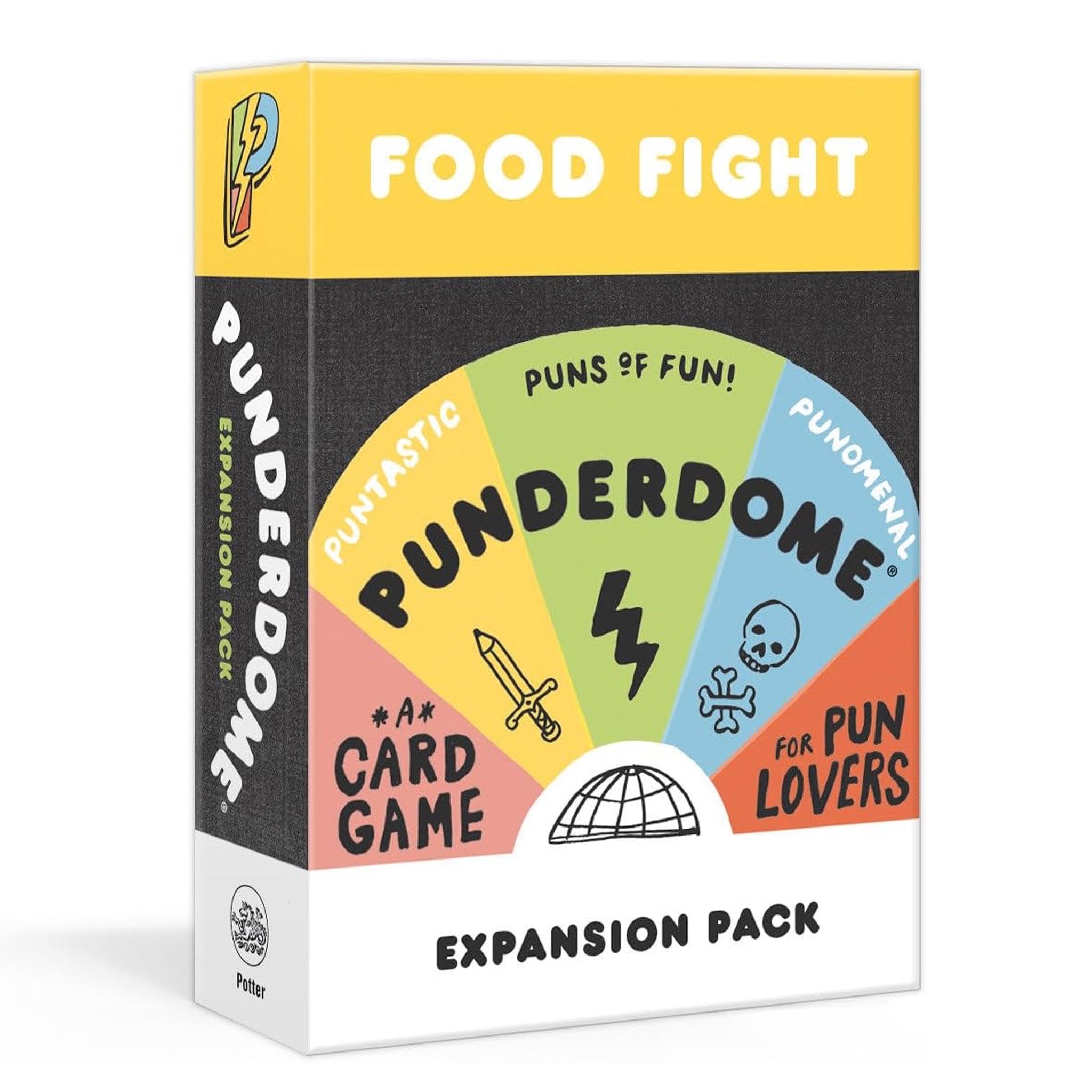 Spice up game night with the Punderdome Food Fight Expansion Pack, the tastiest way to test your pun skills. This deliciously funny add-on to the hit party game features 50 food-themed nouns and 50 punny Q&A cards guaranteed to serve up laughter. From cheesy one-liners to savory wordplay, this deck is perfect for pun lovers and foodies alike.