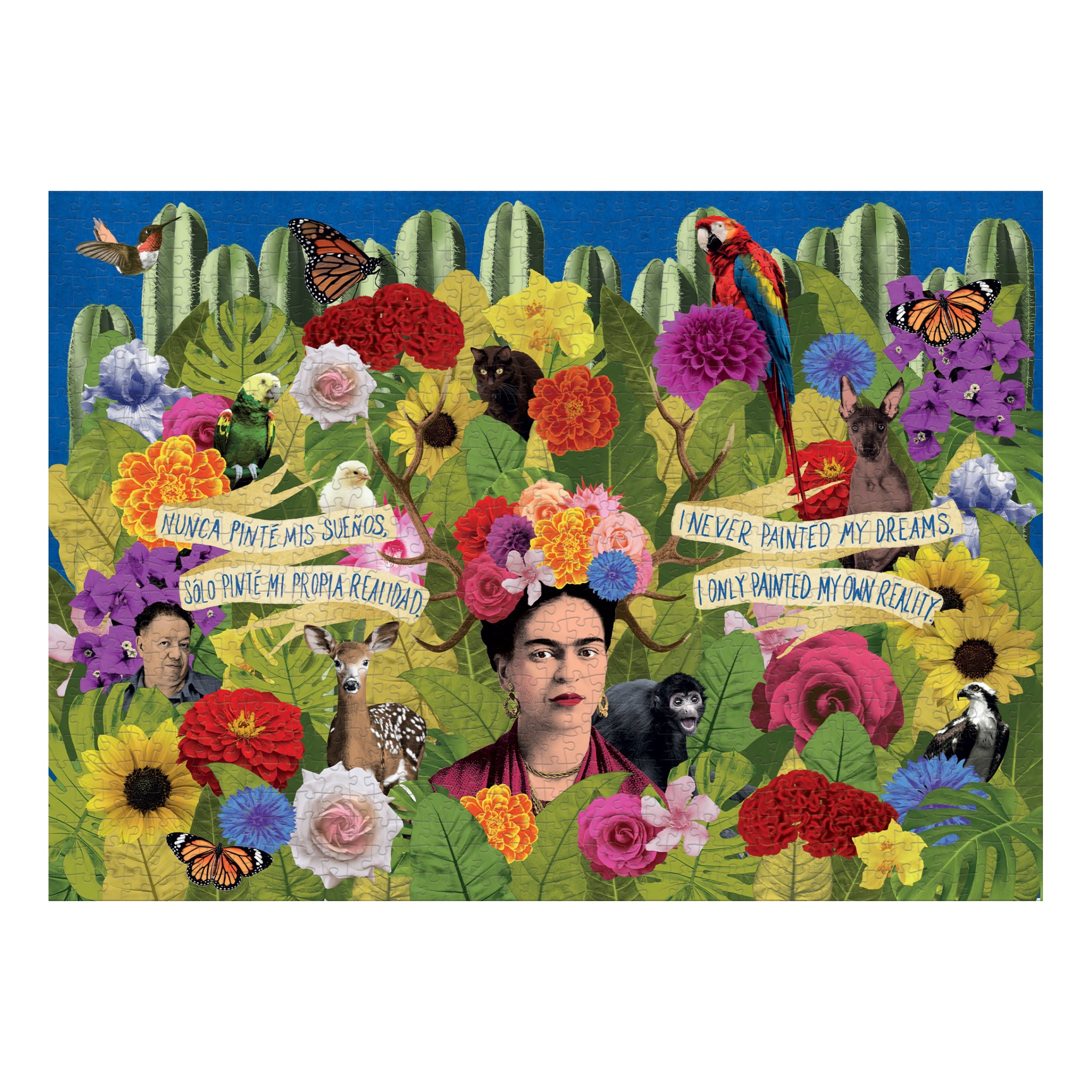 Step into Frida’s garden with a vibrant 1,000 piece puzzle filled with lush foliage, bold blooms, lively animals, and that most mysterious of creatures, Diego.