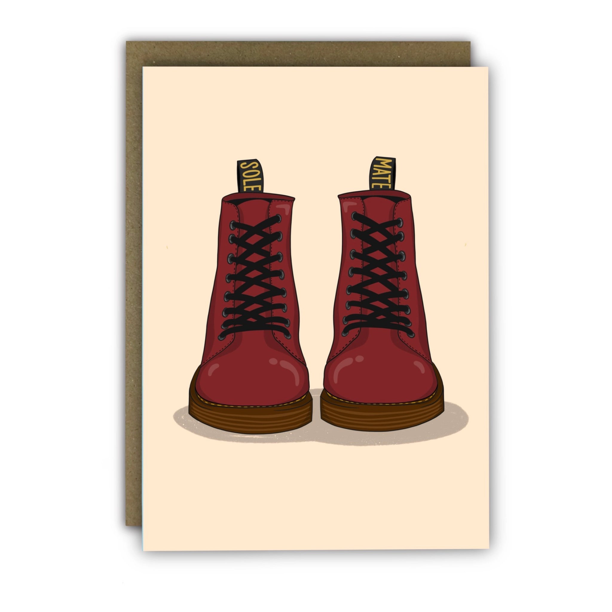Sole Mate Dr Martens Card with bold boot design and playful wordplay, perfect for celebrating love, friendship, or a true sole connection.