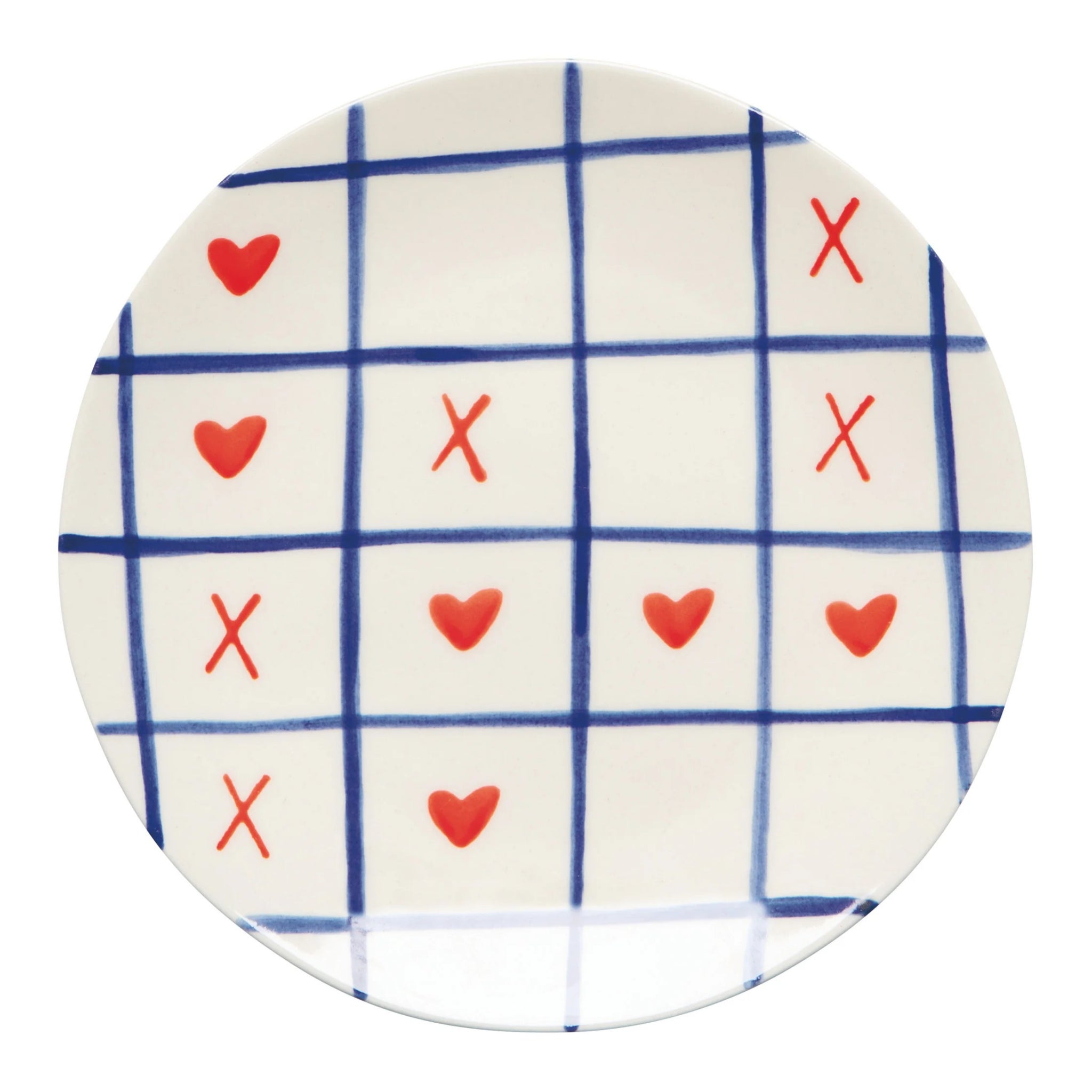 This XOXO appetizer plate adds a fun, graphic twist to snacks and small bites. Bold colors and playful Xs and Os bring cheerful charm to heartfelt moments.