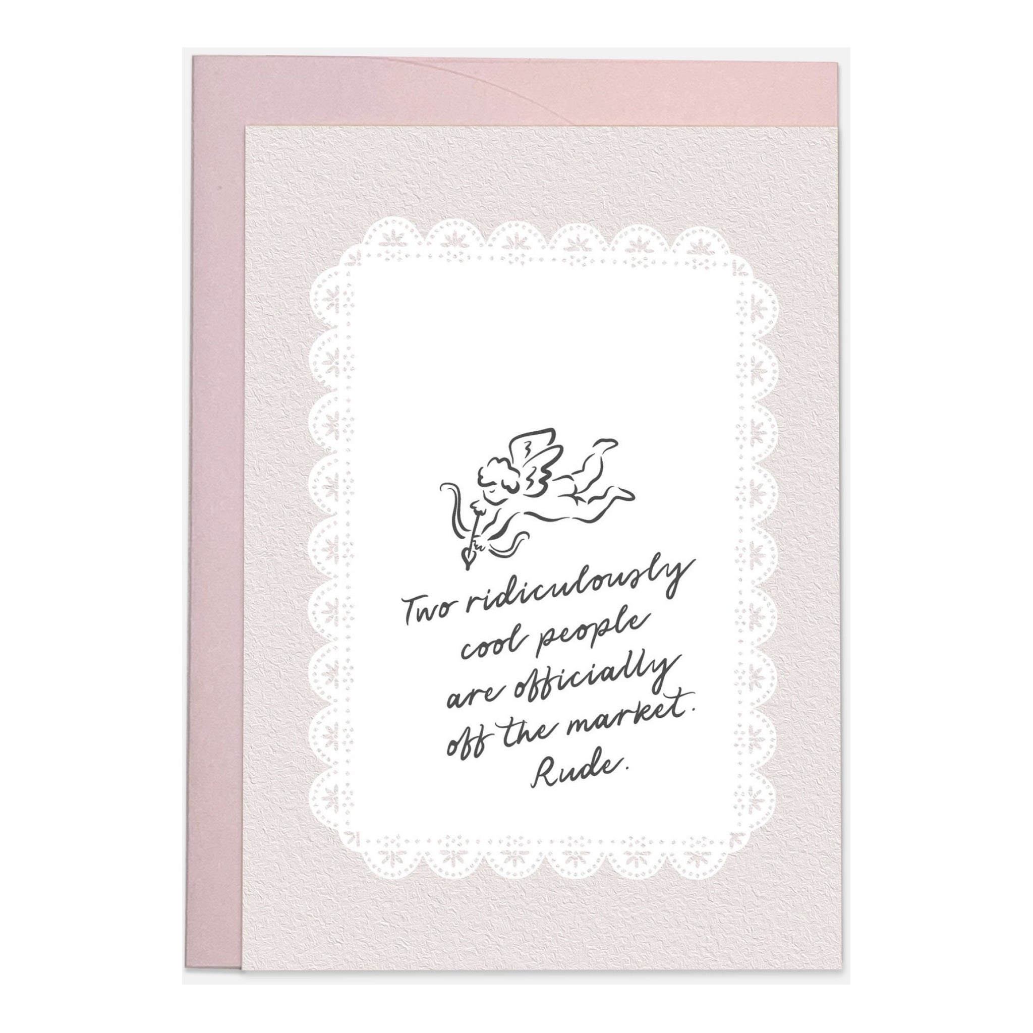 Celebrate love with the Off The Market Wedding Card, a witty wedding greeting perfect for congratulating newlyweds in playful style.