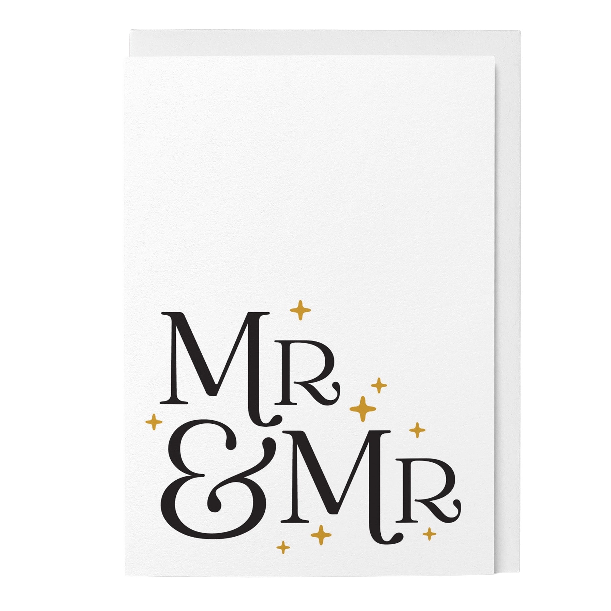 A modern wedding card with bold retro lettering and subtle star details, perfect for celebrating two grooms with clean, timeless style.