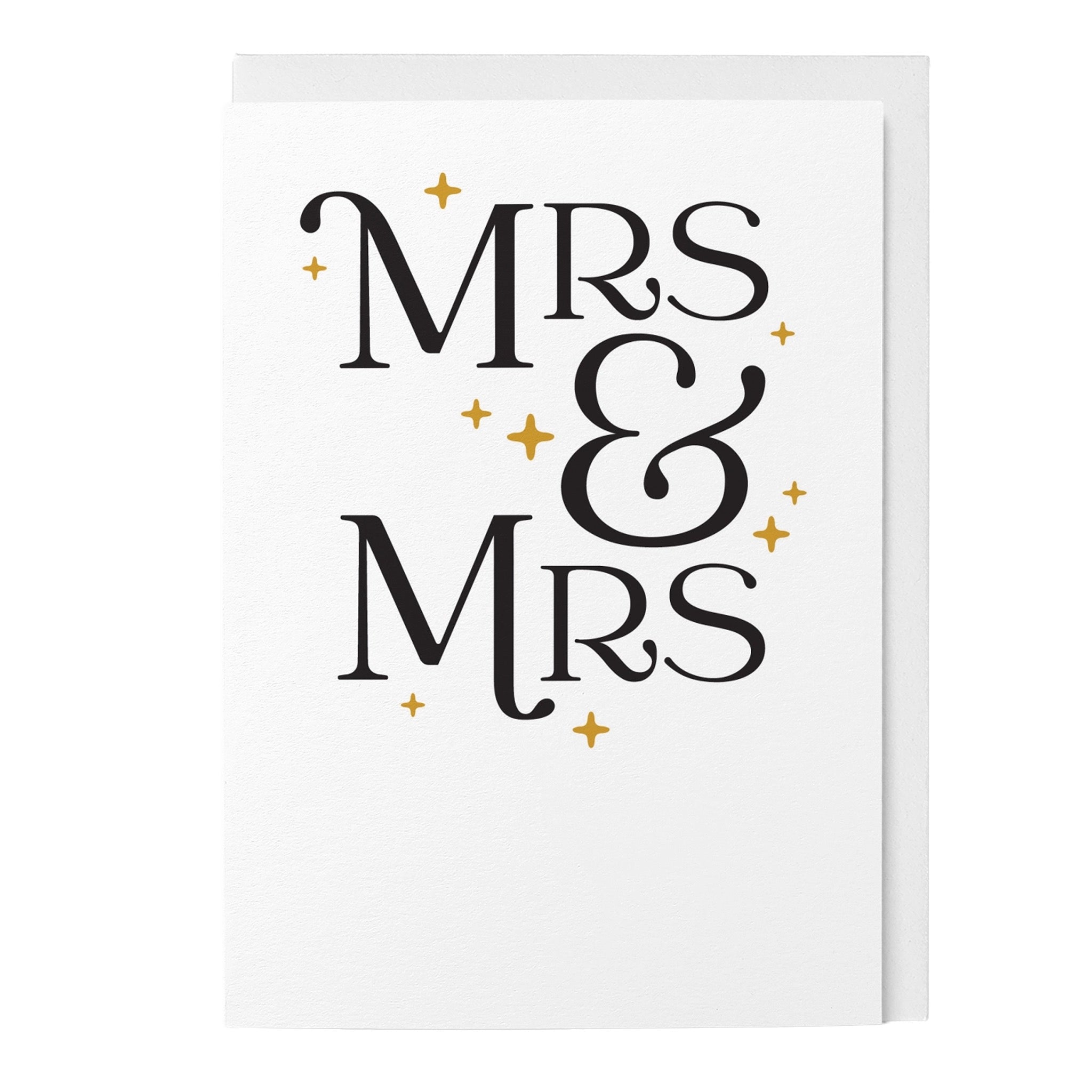 A joyful wedding card featuring elegant retro lettering and subtle sparkle details, perfect for celebrating a Mrs and Mrs love story.