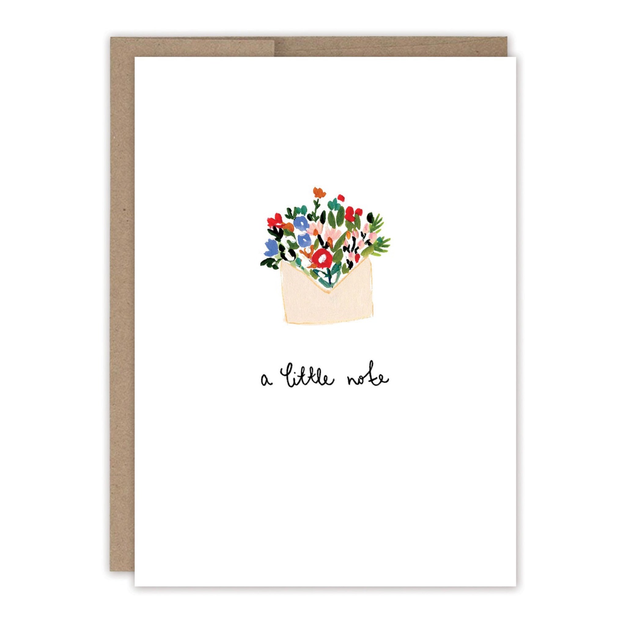 A sweet blank card featuring a tiny bouquet-filled envelope and the message “a little note.” Perfect for everyday hellos, thank yous, and just-because messages.