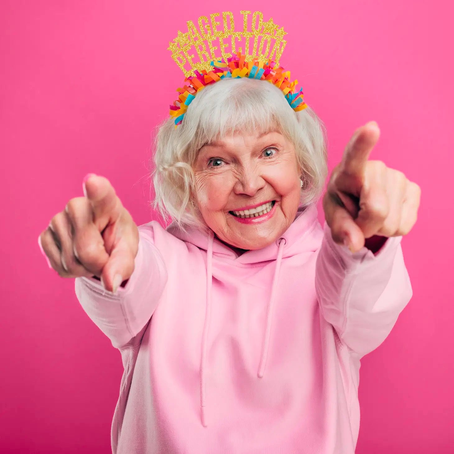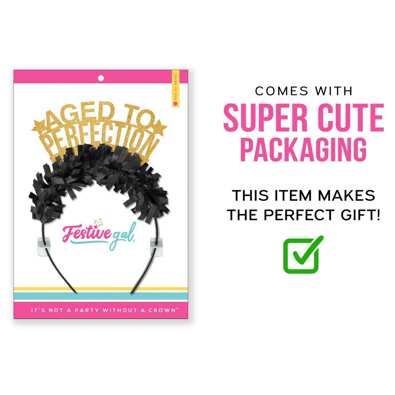 Surprise your loved one on their milestone birthday with this Aged to Perfection Birthday Headband Party Crown!