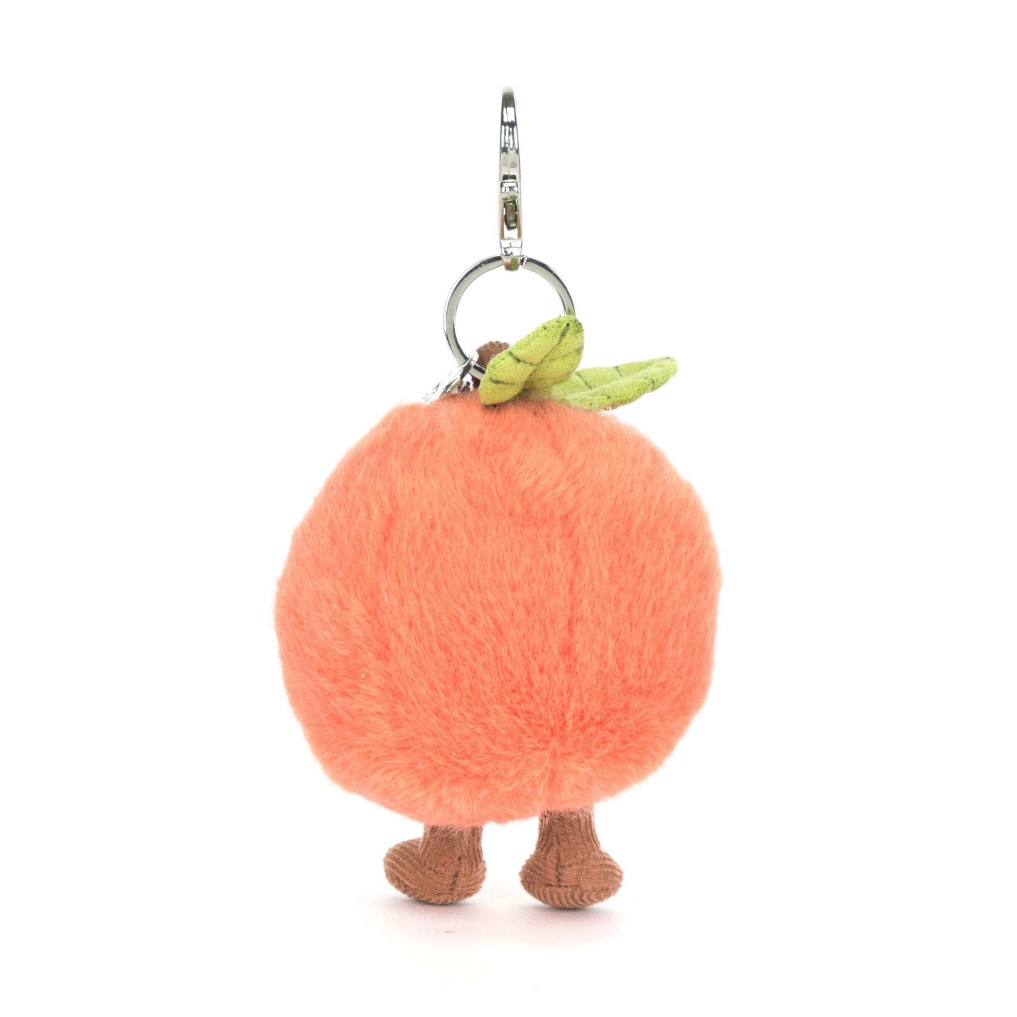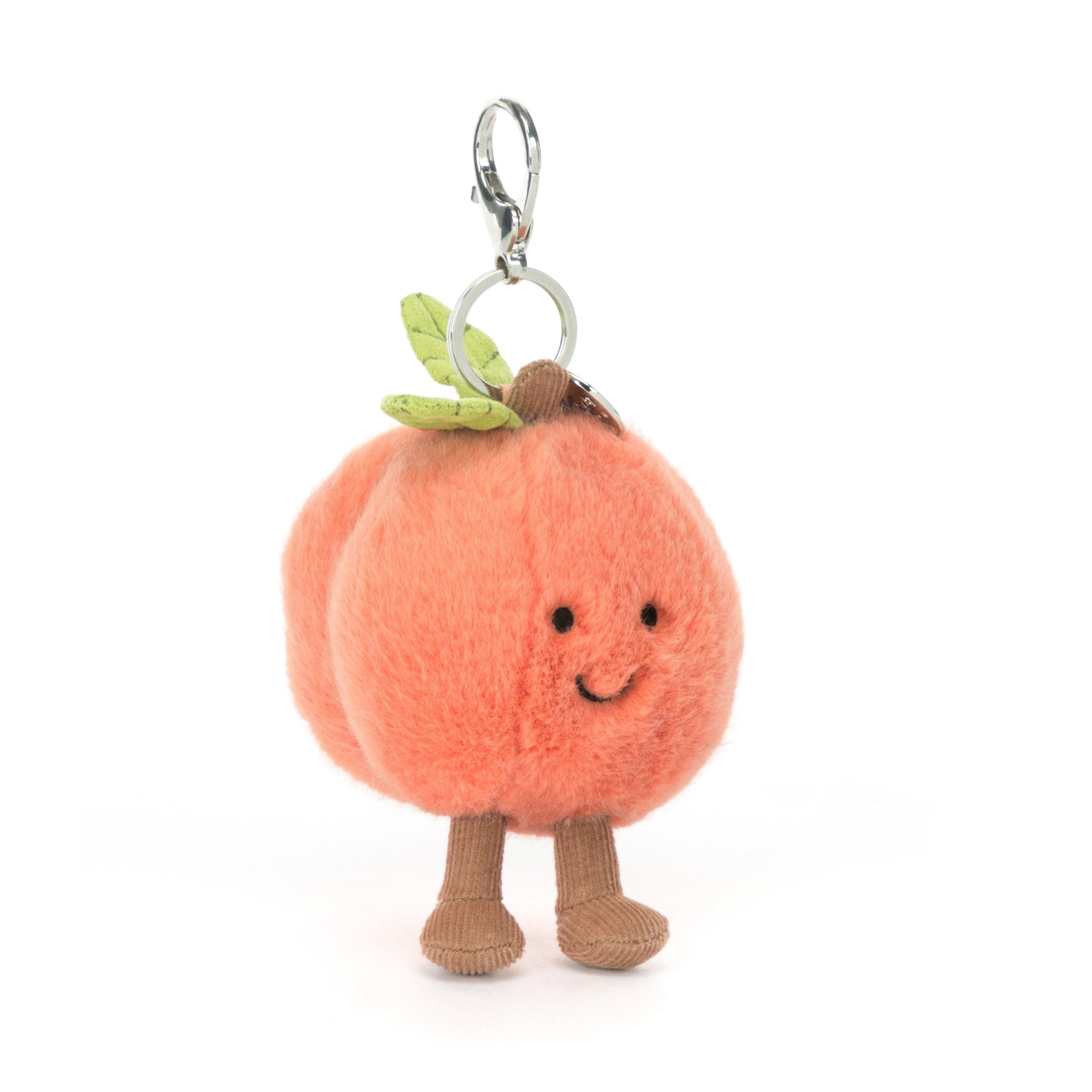 Jellycat Peach Bag Charm is a pocket-sized pop of sunshine with velvety blush fur and a handy silver clasp. Clip this cheerful cutie to your bag, keys, or tote and bring a little sweetness along for the ride.