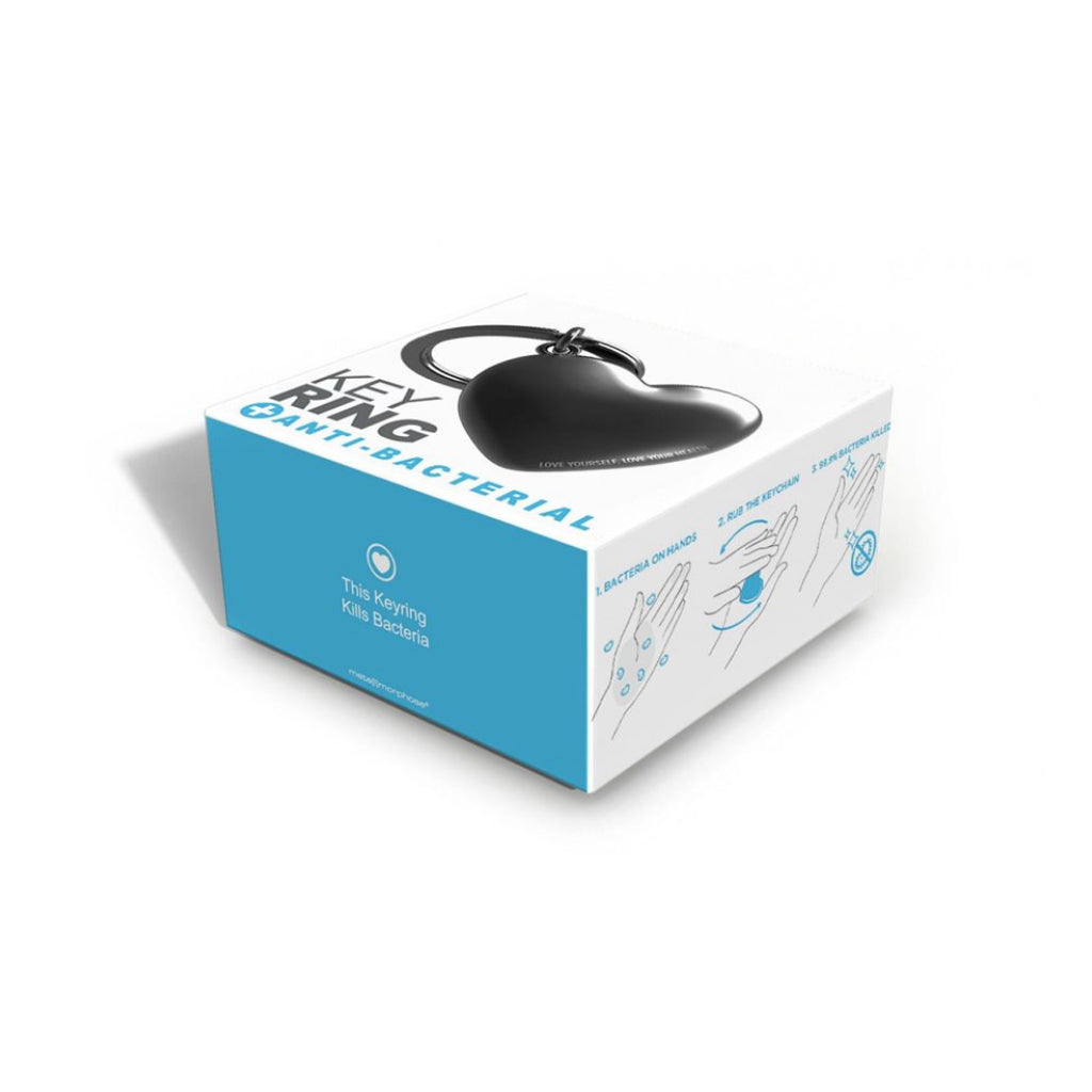 A sleek heart keychain with an anti bacterial coating designed to reduce bacteria on contact. Rub for at least five seconds for a quick refresh on the go. Gift boxed and easy to carry wherever life takes you.