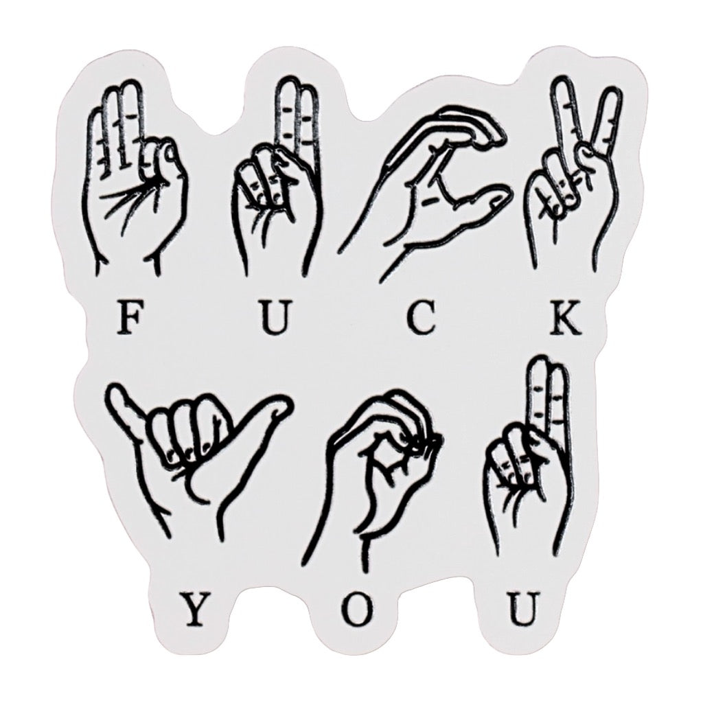This bold ASL sticker spells it out using sign language, with raised textured details that add extra attitude. Made from durable premium vinyl, it’s built to stick around wherever you put it.