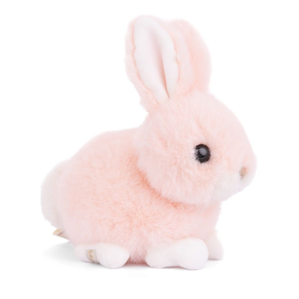This irresistibly soft baby bunny plush in a sweet peach hue is ready for cuddles. With its fluffy fur and gentle expression, it makes a comforting companion for little ones and bunny lovers alike.