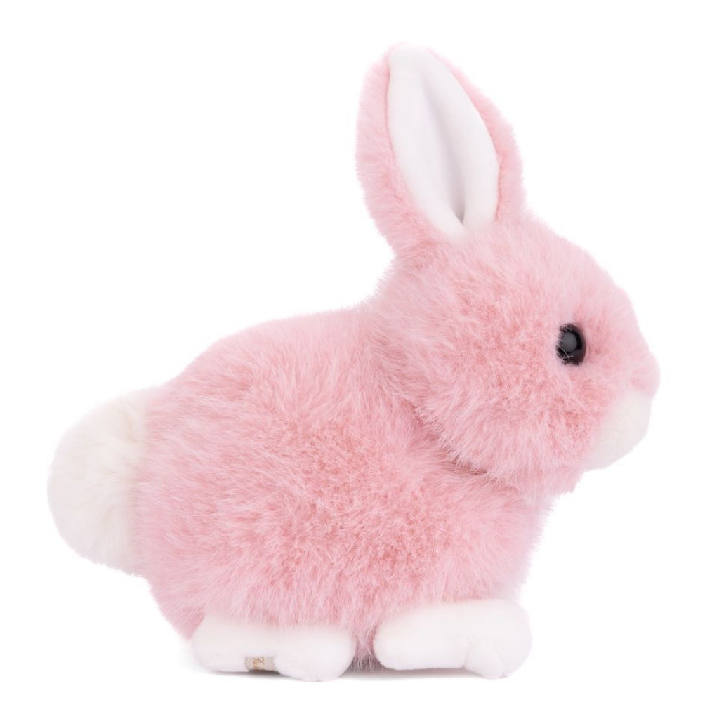 This irresistibly soft baby bunny plush in a sweet strawberry pink hue is made for cuddles. With its fluffy fur and gentle expression, it makes a comforting companion for little ones and bunny lovers alike.