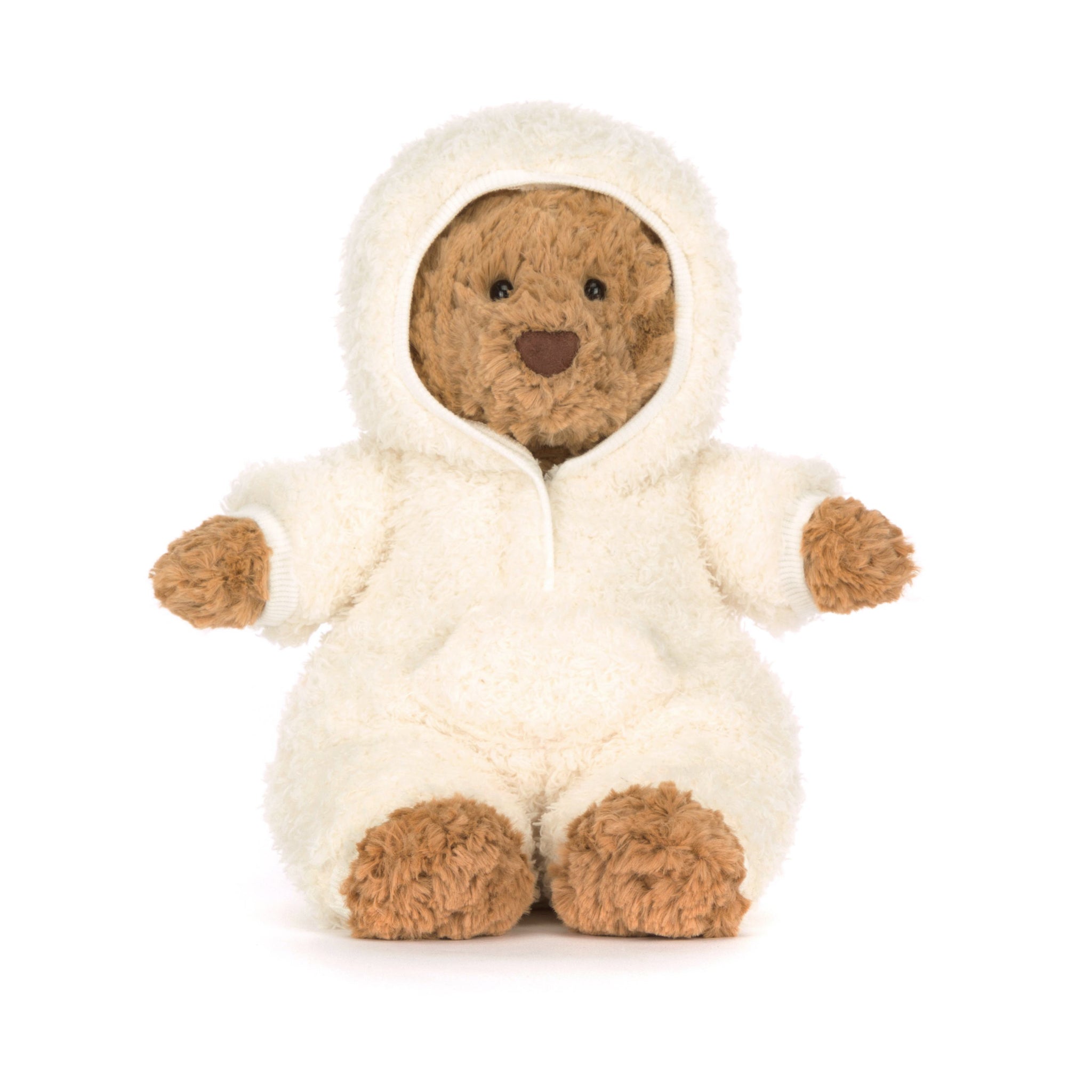 Jellycat Bartholomew Bear All-In-One Outfit is zipped into peak cozy, ready for snack breaks, movie nights, and serious lounge mode.