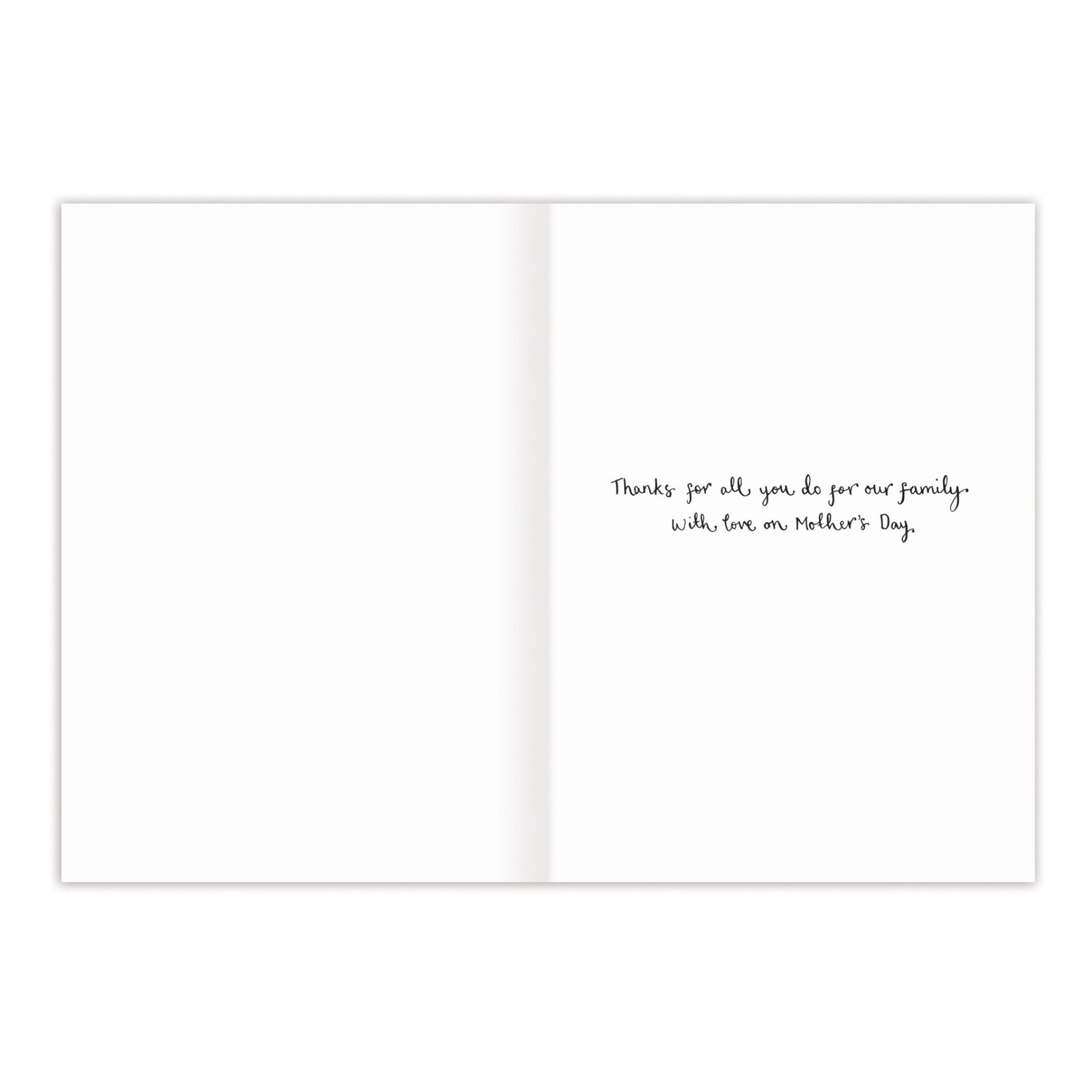 - Inside message: Thanks for all you do for our family. With love on Mother's Day