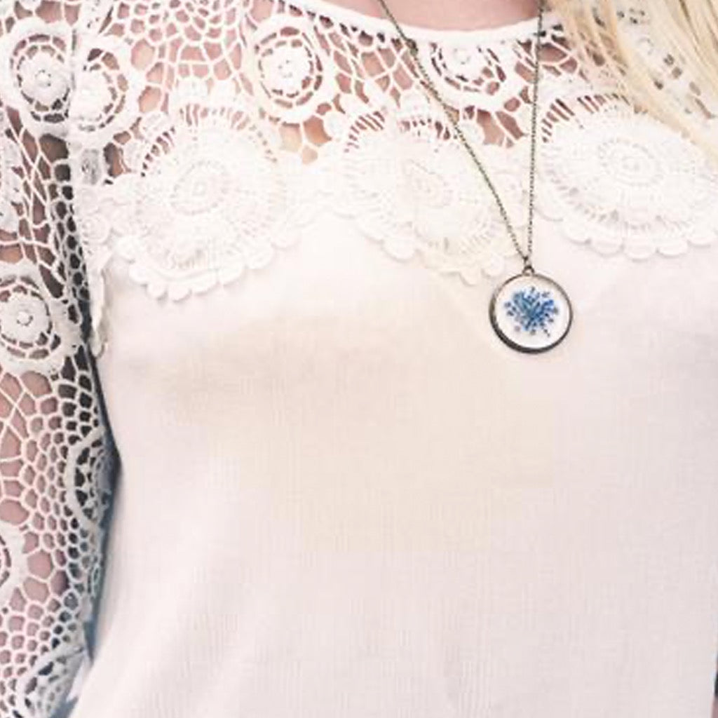 Blue Queen Anne's Lace Necklace Antique Bronze