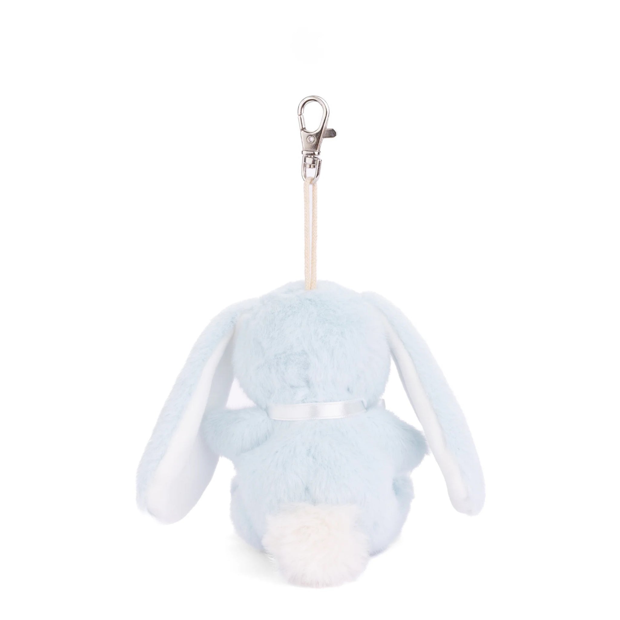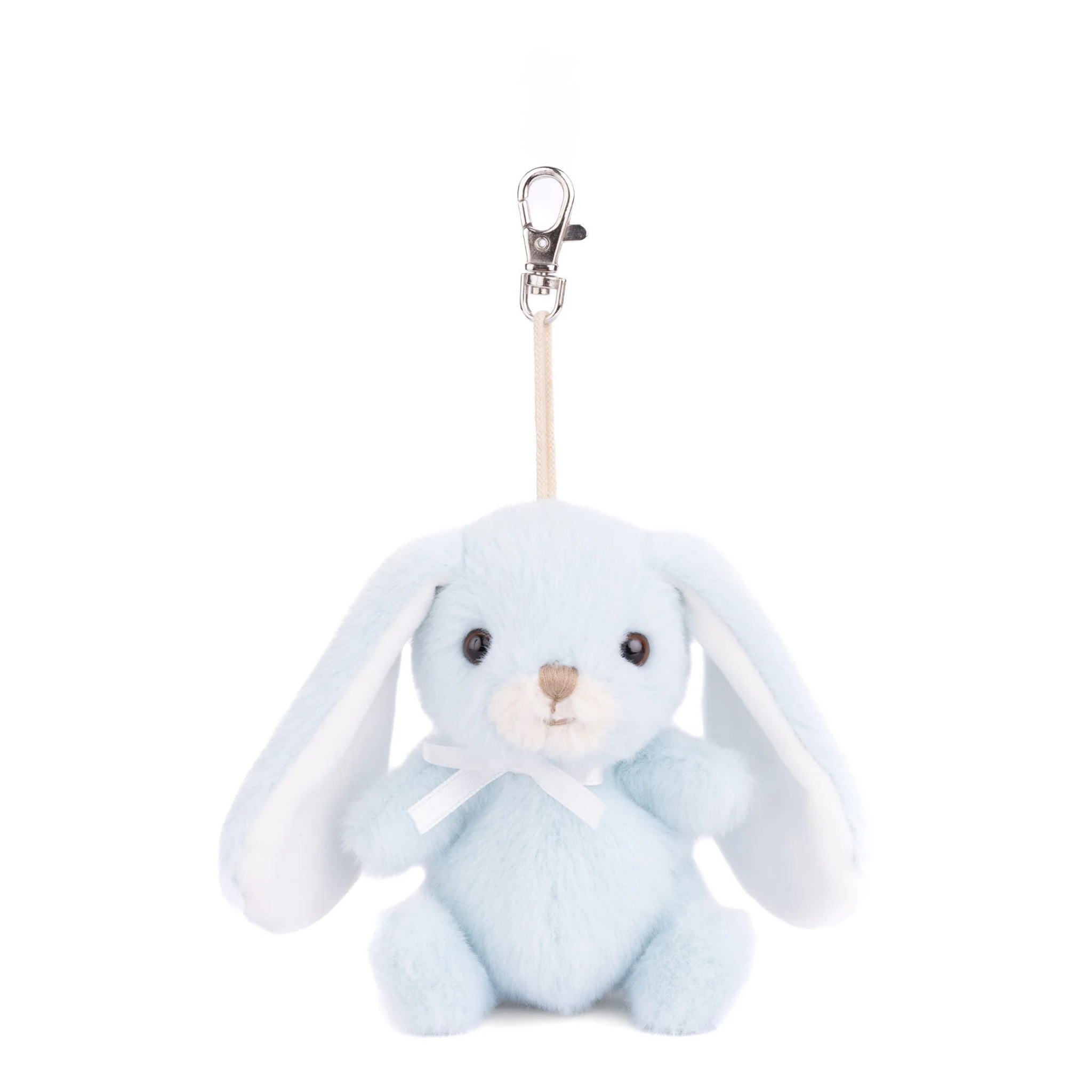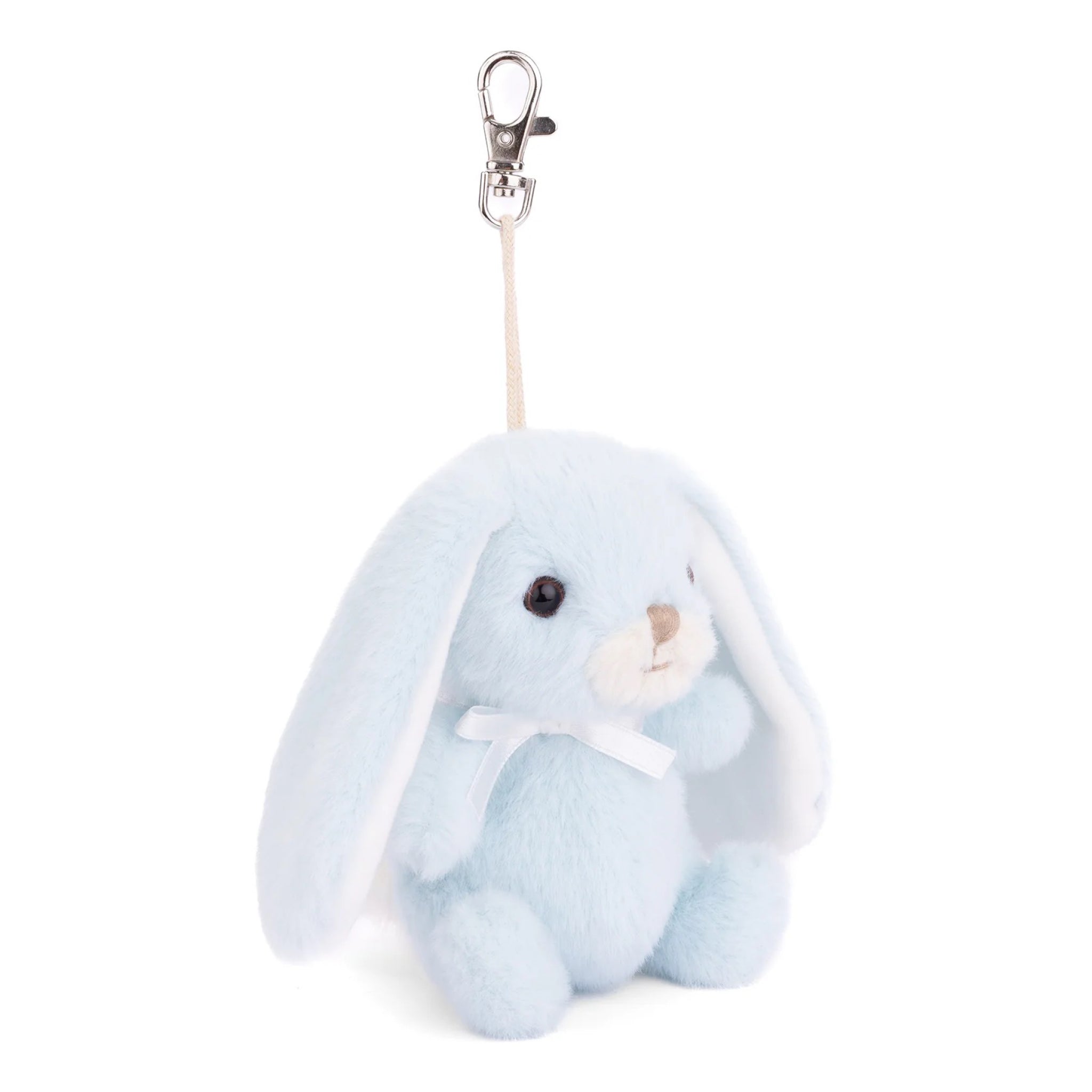 Bouncy Bunny bag charm in Heaven Blue brings a hop of happiness wherever you clip it. This ultra soft plush bunny features velvety long ears, a sweet embroidered muzzle, and a handy metal clip for attaching to totes, backpacks, strollers, or keys. A perfectly portable dose of cozy cute from Bukowski.