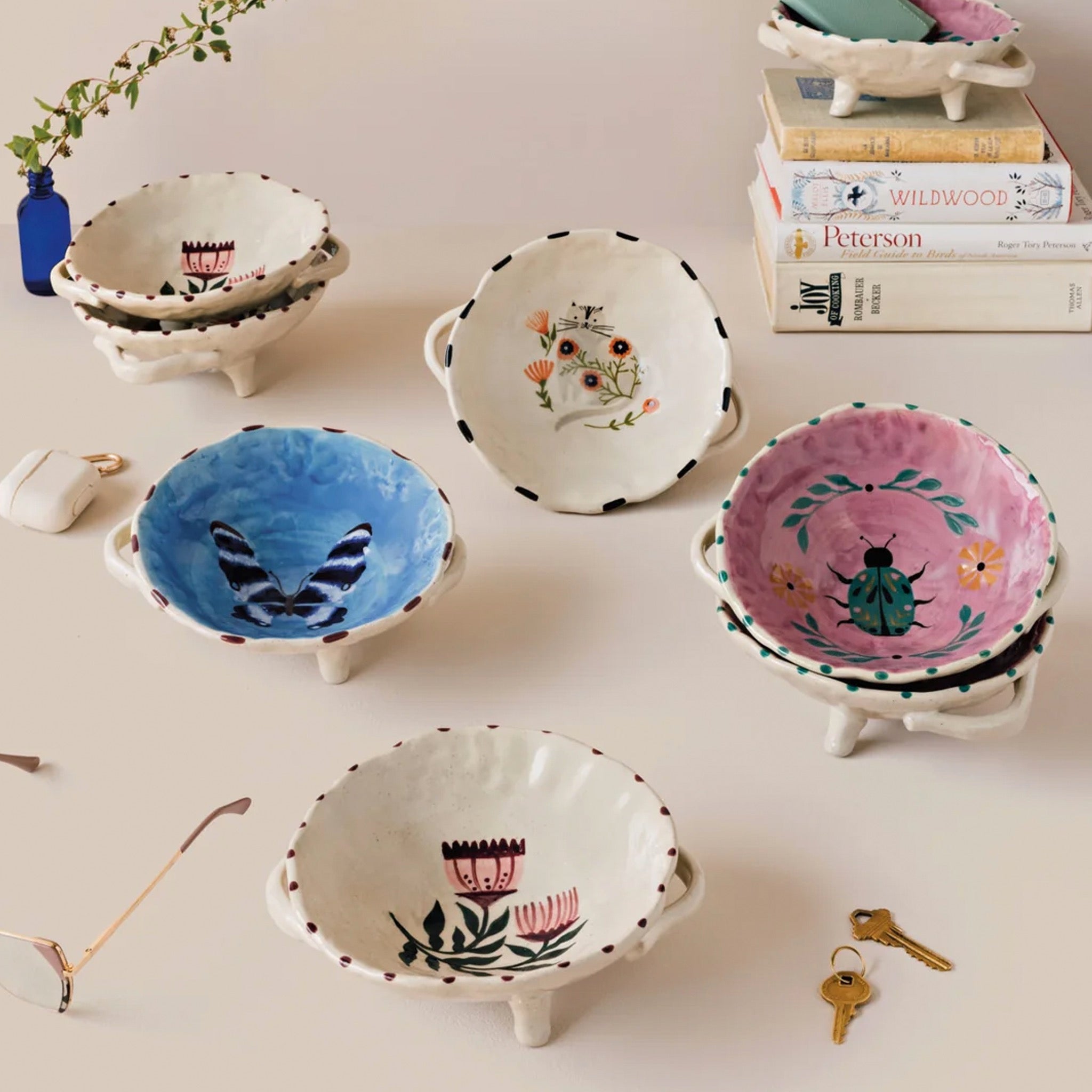 This Amulet footed bowl adds a touch of good fortune to everyday storage, with a charming creature design that watches over small essentials. Organic edges and a glossy finish create a handmade feel with playful, lucky charm.