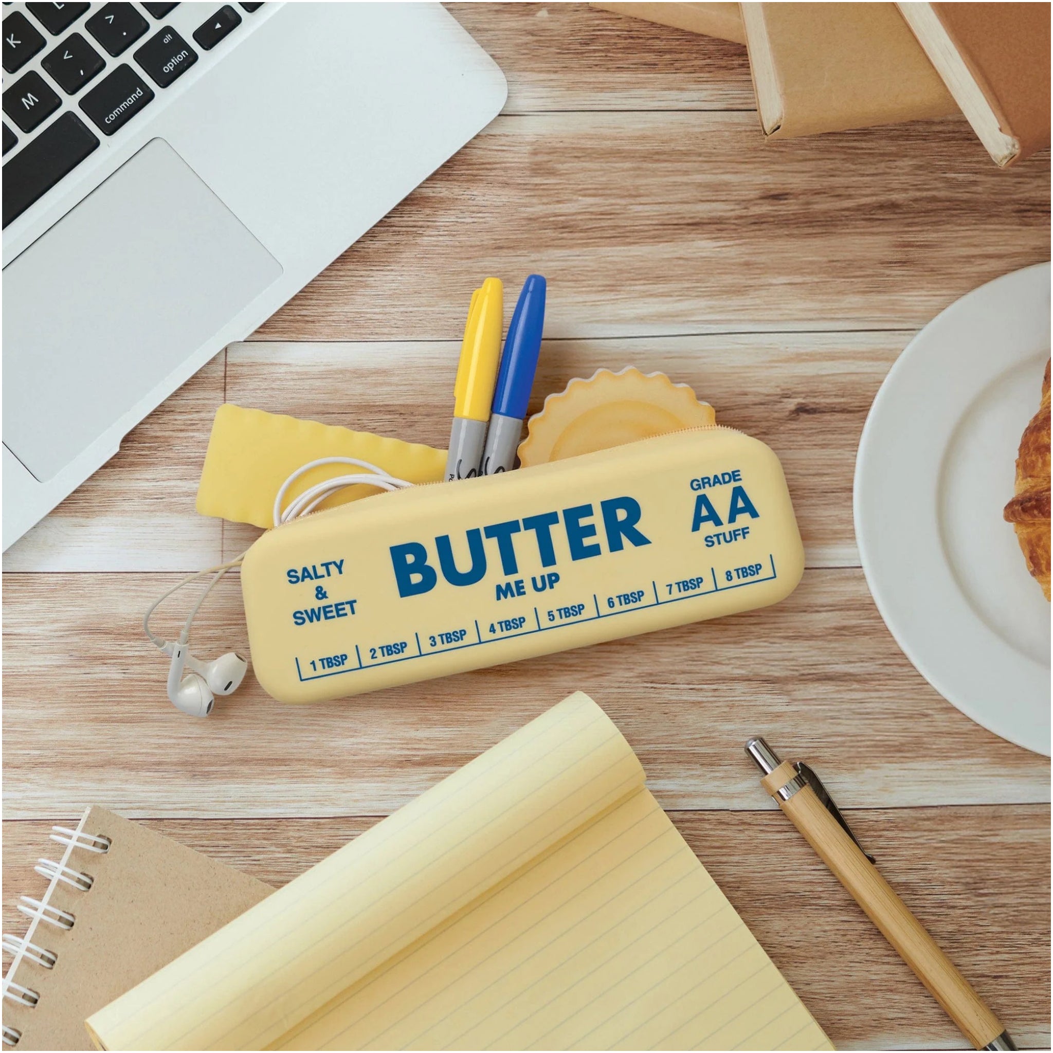 A butter way to stay organized. This soft silicone pouch is shaped like a stick of butter, ready to stash pens, makeup, chargers, or whatever’s melting around in your bag.