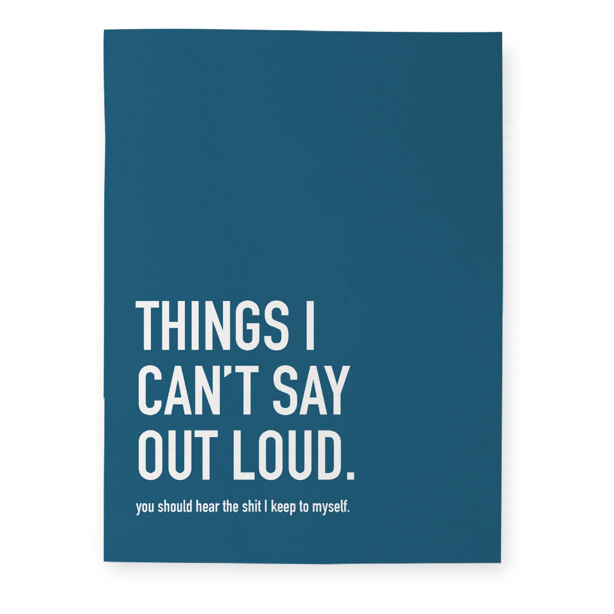 For the thoughts better left on paper. This cheeky notebook features a bold “Things I can’t say out loud” cover and lined pages for notes, lists, and private rants.
