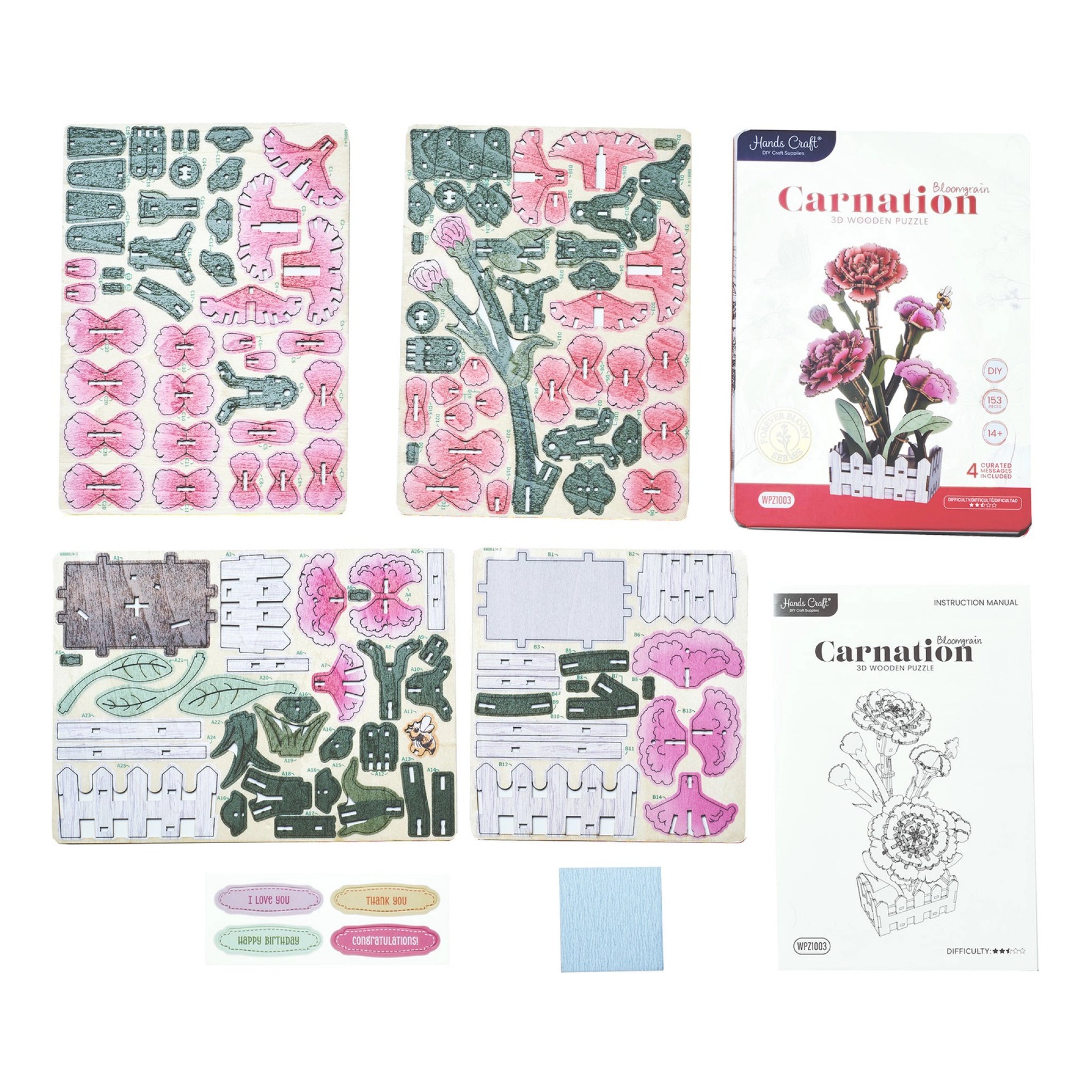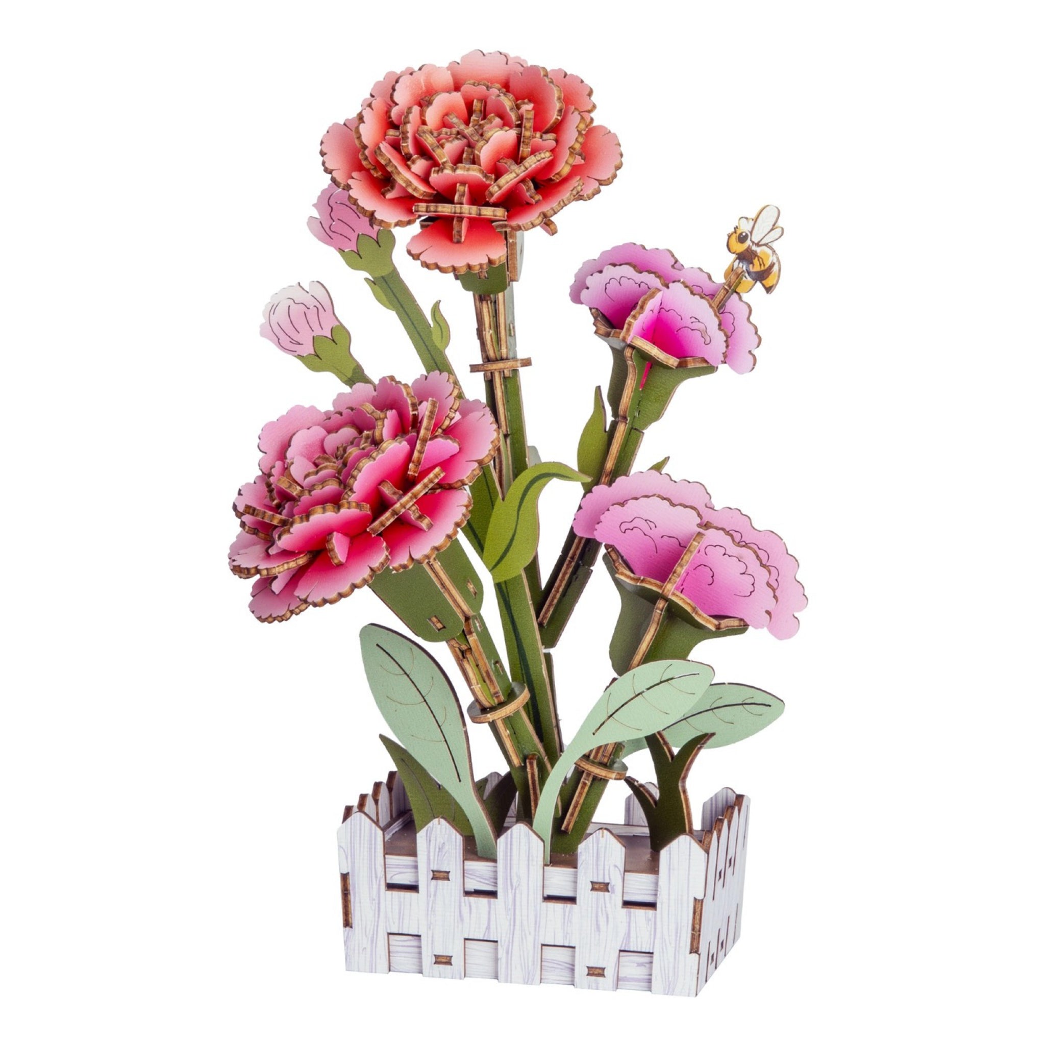 This DIY wooden puzzle kit builds a carnation bloom set with precision cut pieces that fit together smoothly, no glue or tools needed. A relaxing project that turns into cheerful decor and includes four message cards for gifting.