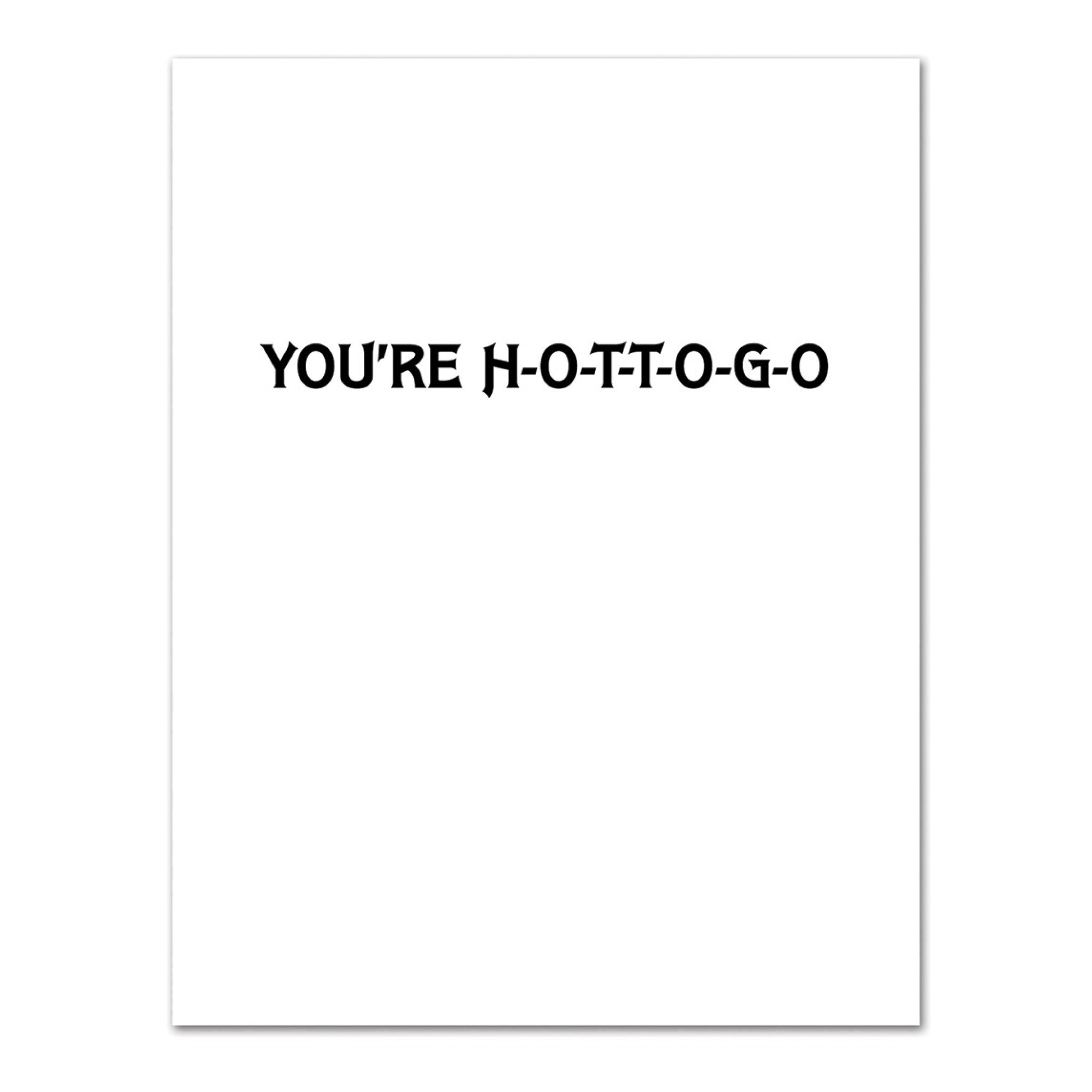 - Inside message: You're H-O-T-T-O-G-O