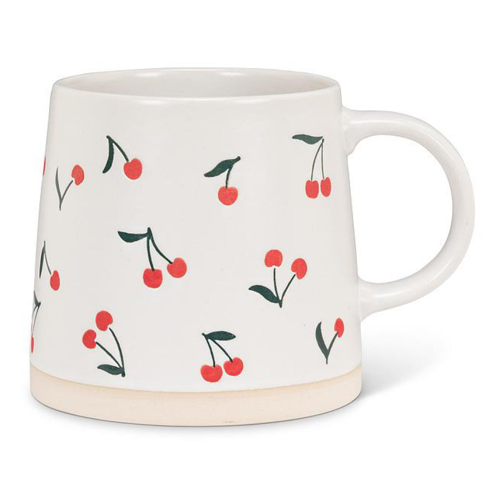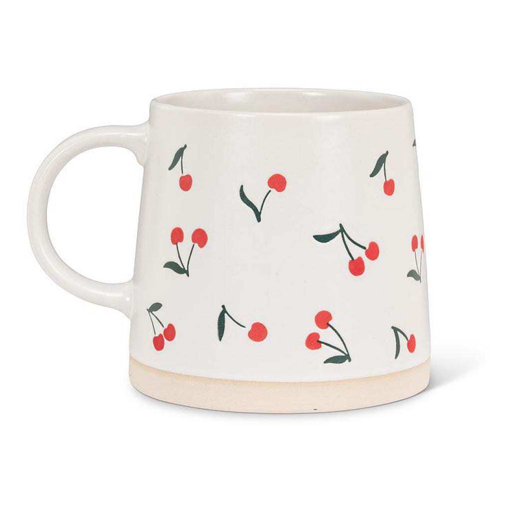 This wide base stoneware mug is sprinkled with sweet cherries for a cheerful start to the day. Sturdy and easy to love, it’s a playful everyday pick for coffee or tea.