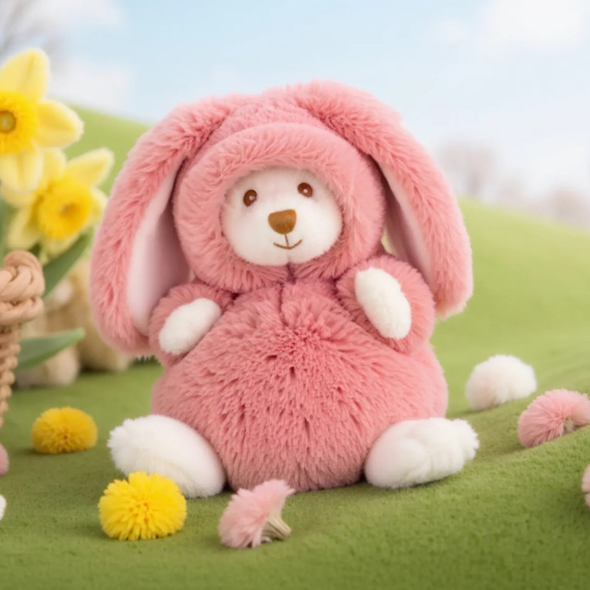 Colorful Ziggy Tulip Pink is ready for dress-up fun in a cozy bunny hoodie that transforms this sweet little bear into an imaginative playtime pal. With ultra-soft plush and hand-embroidered eyes, Ziggy is perfectly sized for small hands and big cuddles.