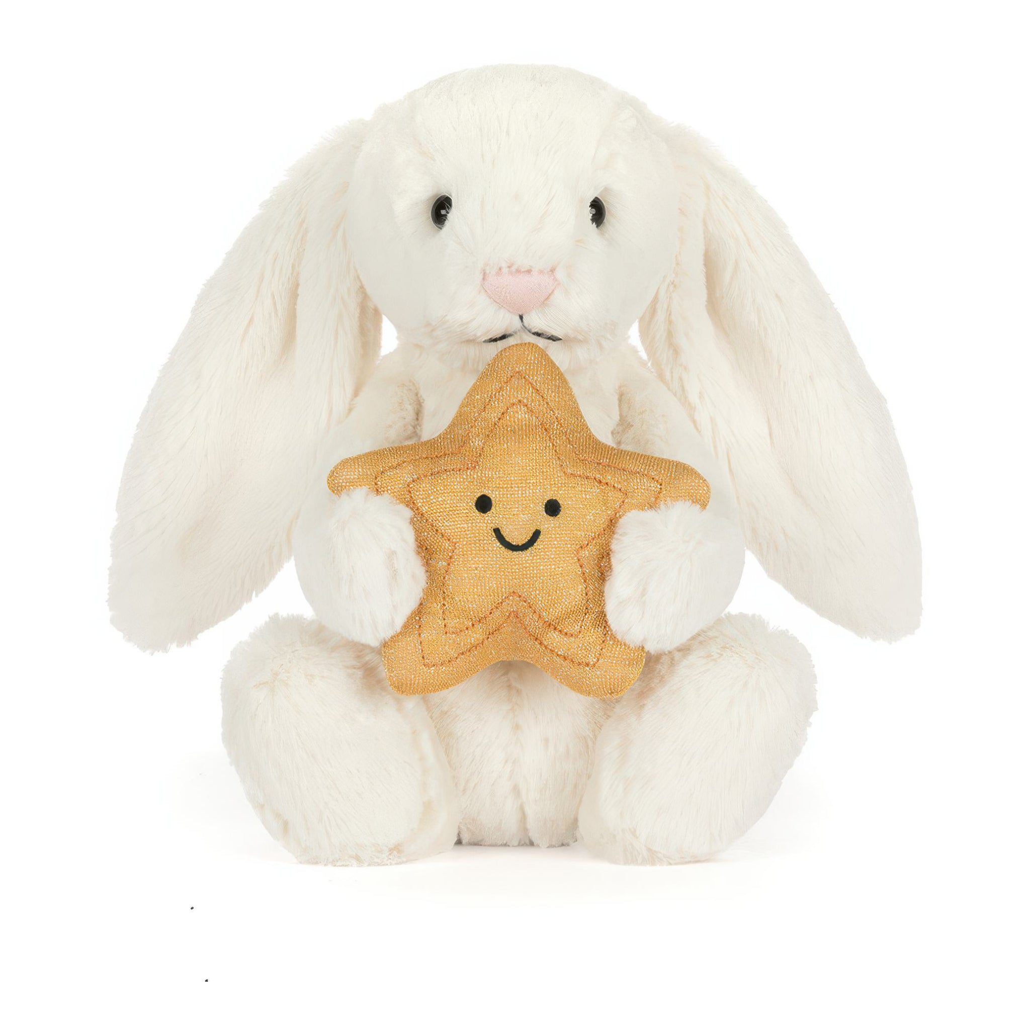 Jellycat Cream Bunny With Star is a soft and cuddly companion holding a cheerful golden star. Sweet and comforting, Jellycat Cream Bunny With Star makes a lovely gift for milestones, celebrations, and everyday encouragement.