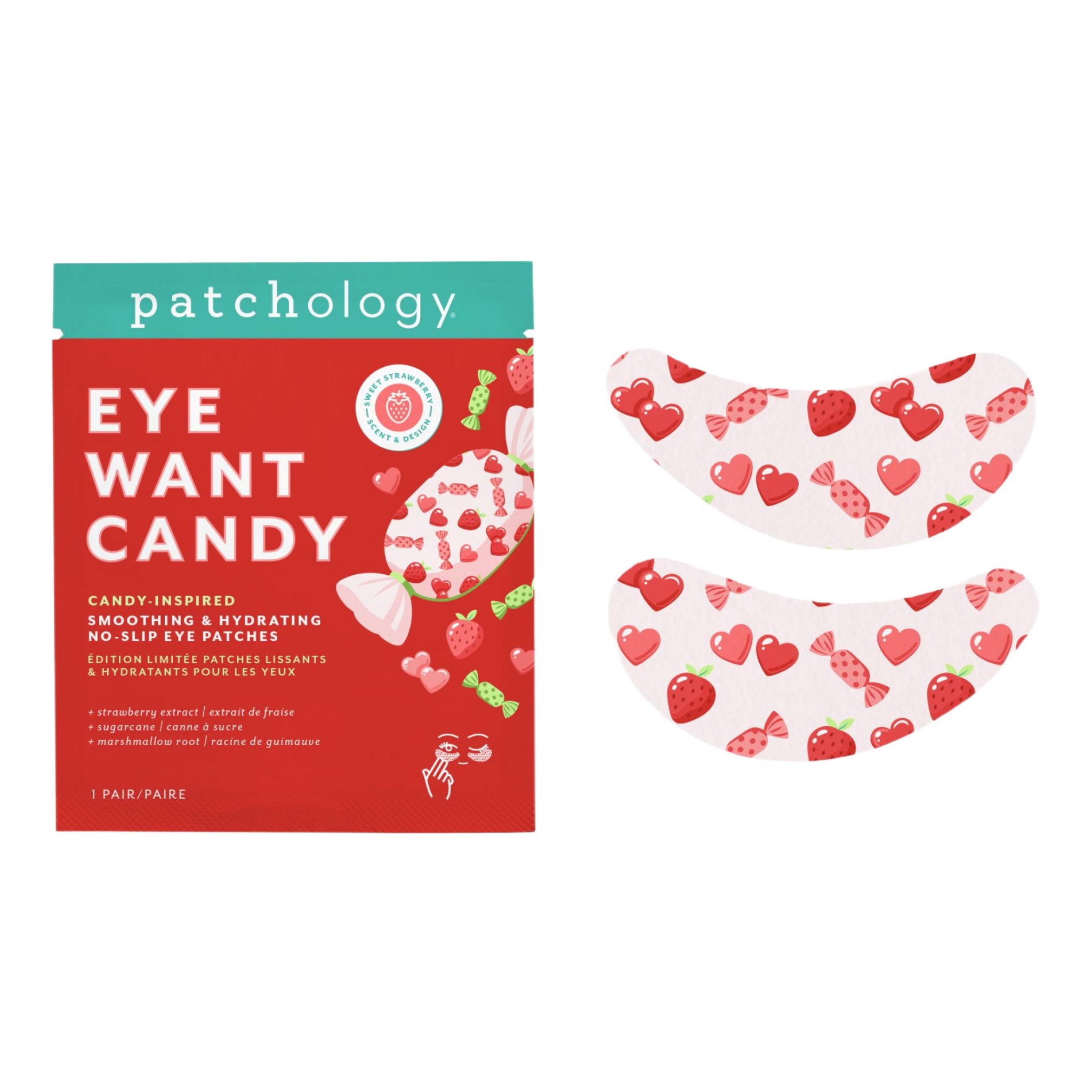 Sweeten up self care with these limited edition no slip hydrogel eye gels, made to cool, de-puff, and hydrate tired under eyes with a strawberry scent and candy inspired design.