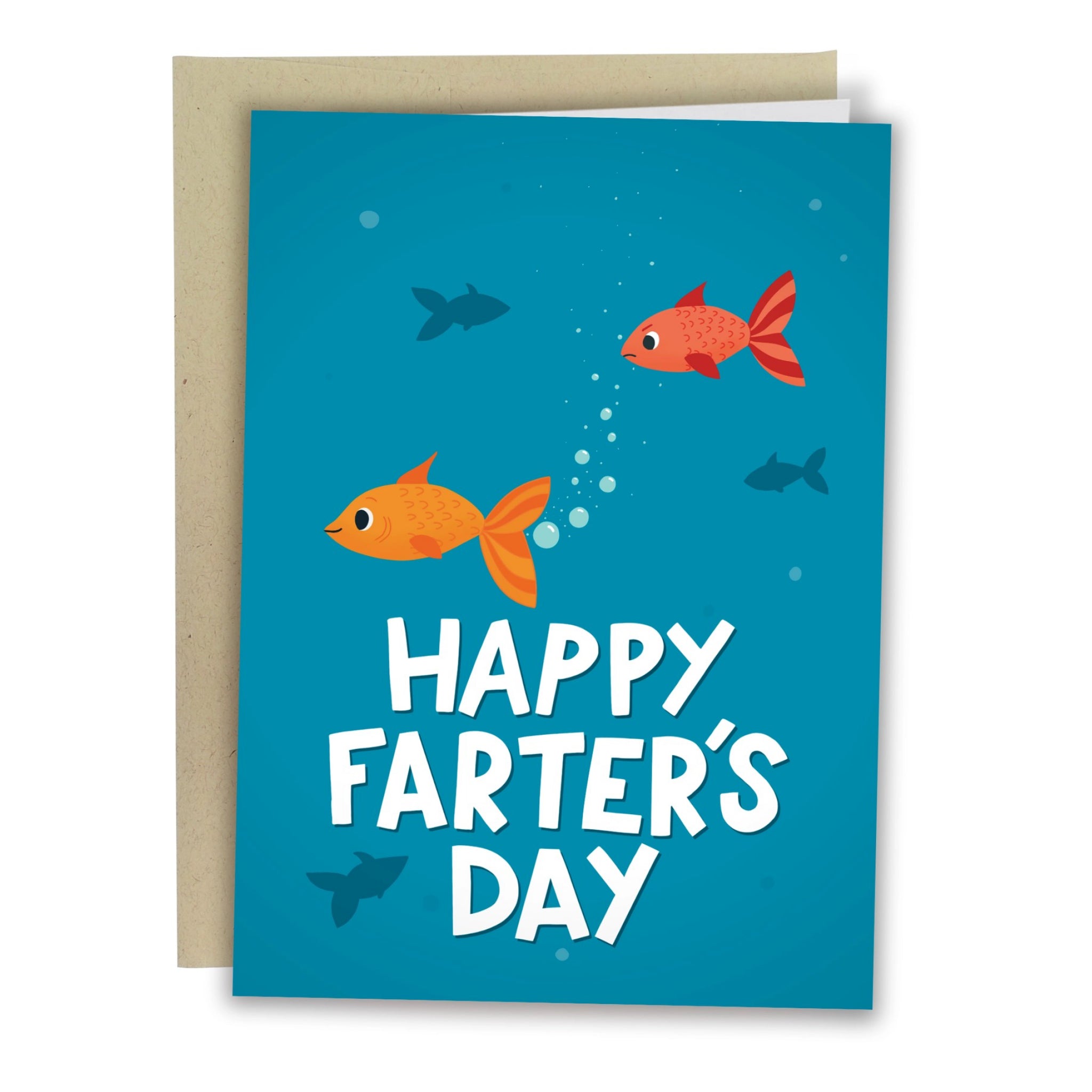 A silly, sea-themed Father’s Day card that says “Happy Farter’s Day,” complete with bubbly fish. Blank inside for your best dad joke, pun, or heartfelt note.