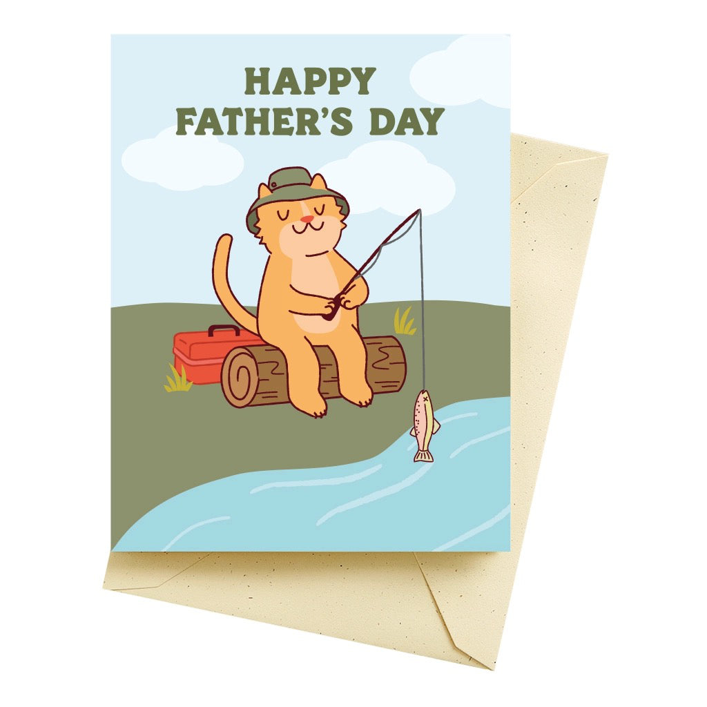 A playful Father’s Day card featuring a fishing cat and a sweet message for dad. Great for anyone who loves a quiet cast and a good laugh.