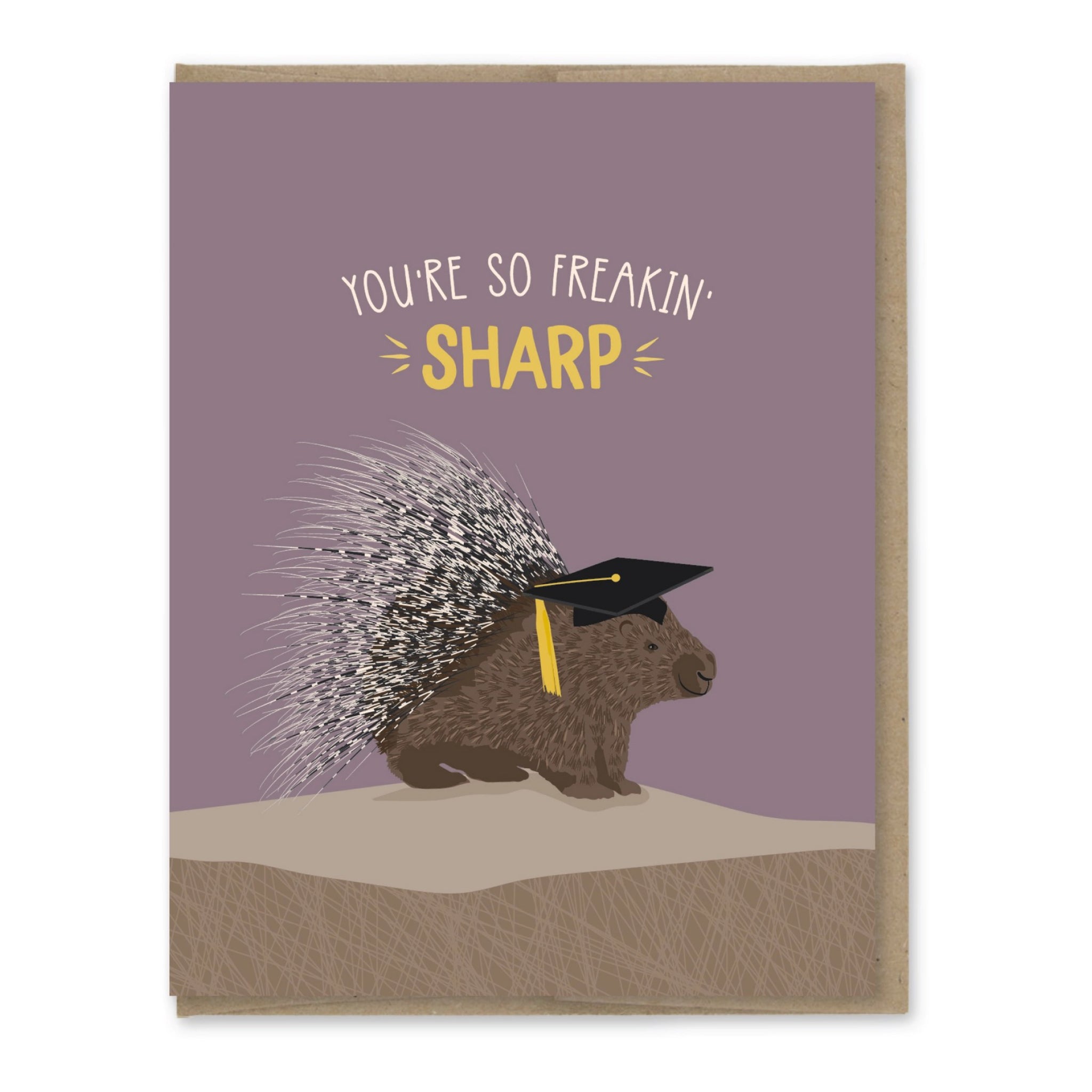 A funny graduation card featuring a porcupine in a grad cap with the message “You’re so freakin’ sharp.” Perfect for celebrating big brains and bigger milestones.