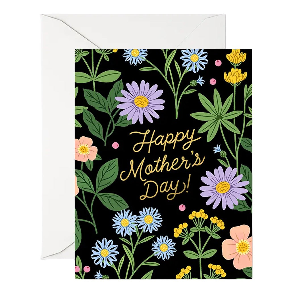 This happy mother’s day wildflowers greeting card pairs vibrant blooms with gold foil lettering, perfect for sending love and thanks with a little extra sparkle.