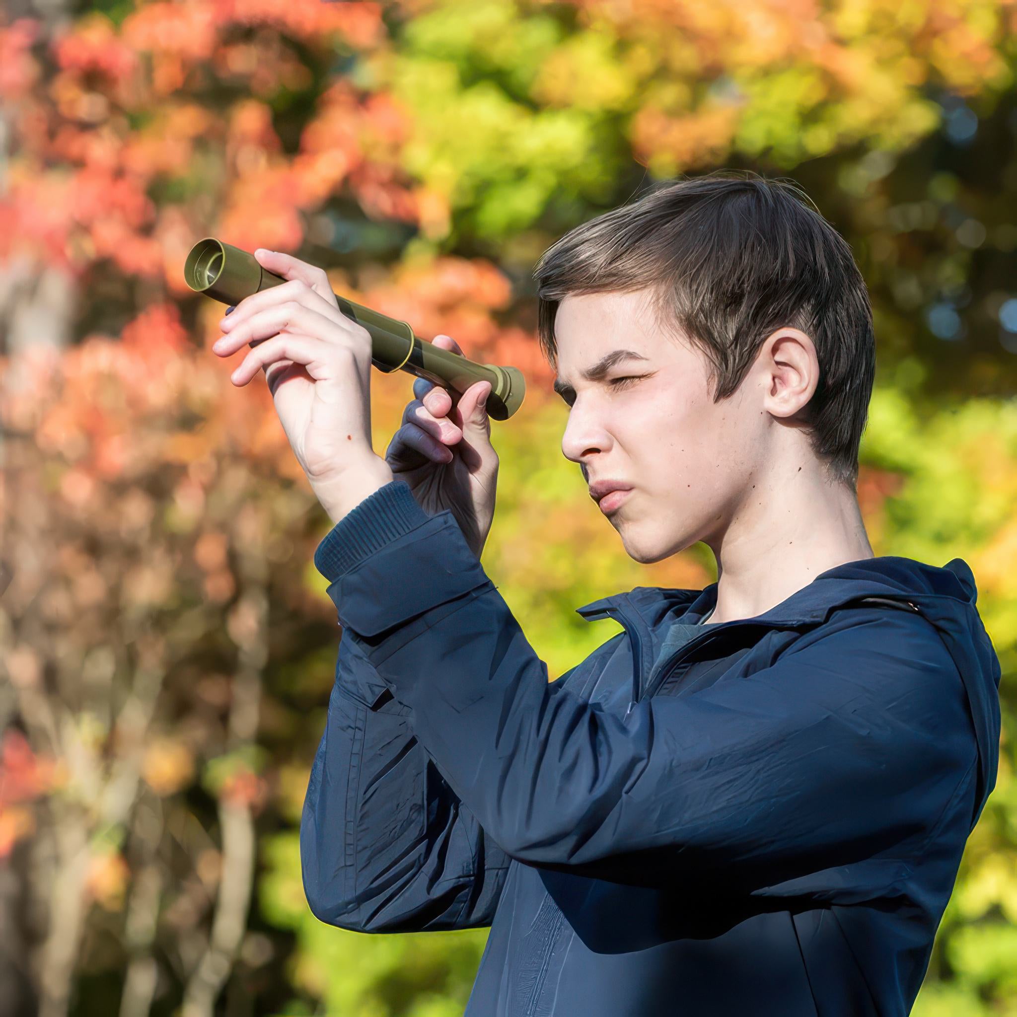 Explore the world up close with this Huckleberry telescope. Look through the eyepiece and adjust the magnification to focus faraway views for backyard adventures and curious kids.