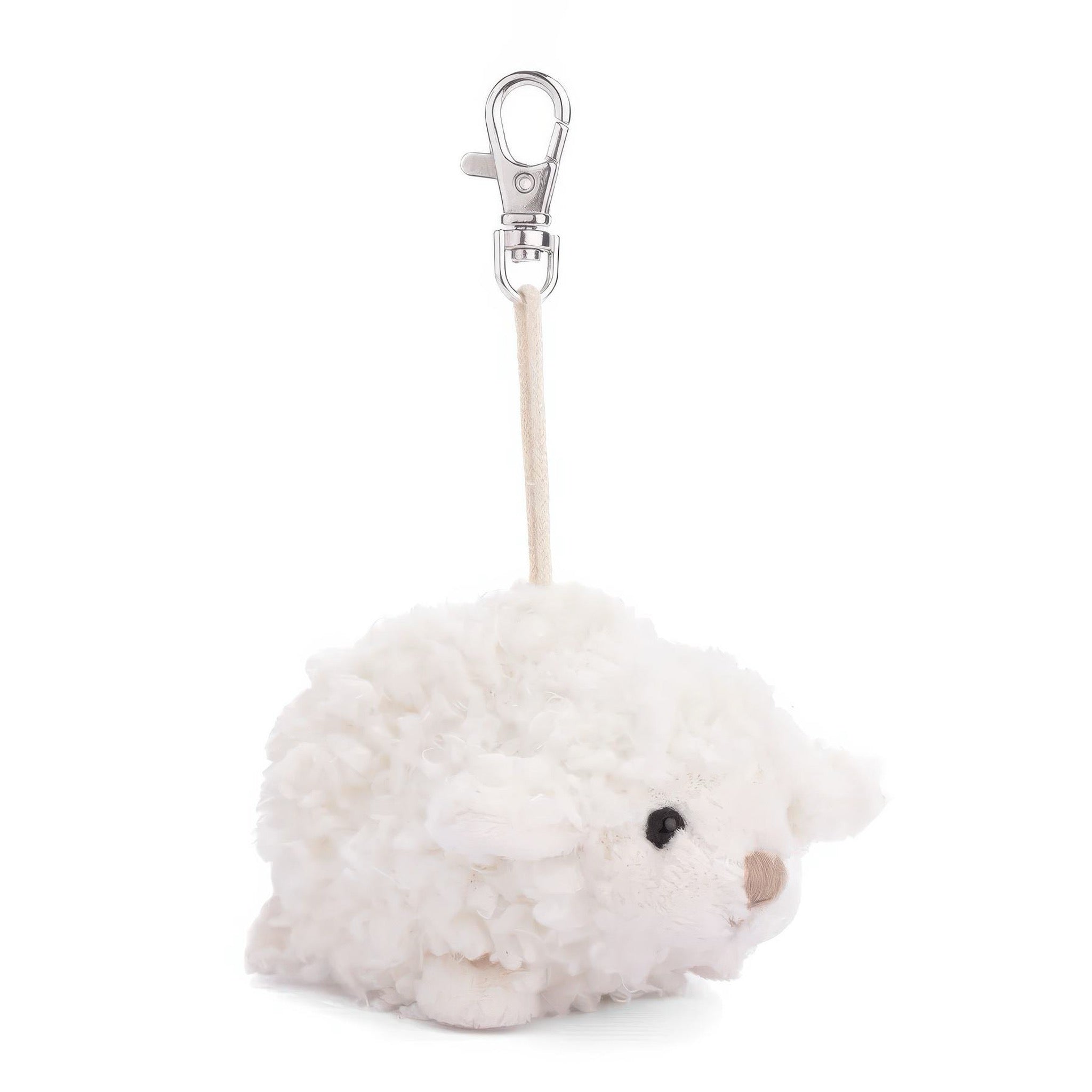 Bring fleecy joy wherever you go with the lefty white sheep bag charm. Designed in Sweden and made from ultra-soft plush, this tiny lamb adds whimsy to backpacks, totes or keys.