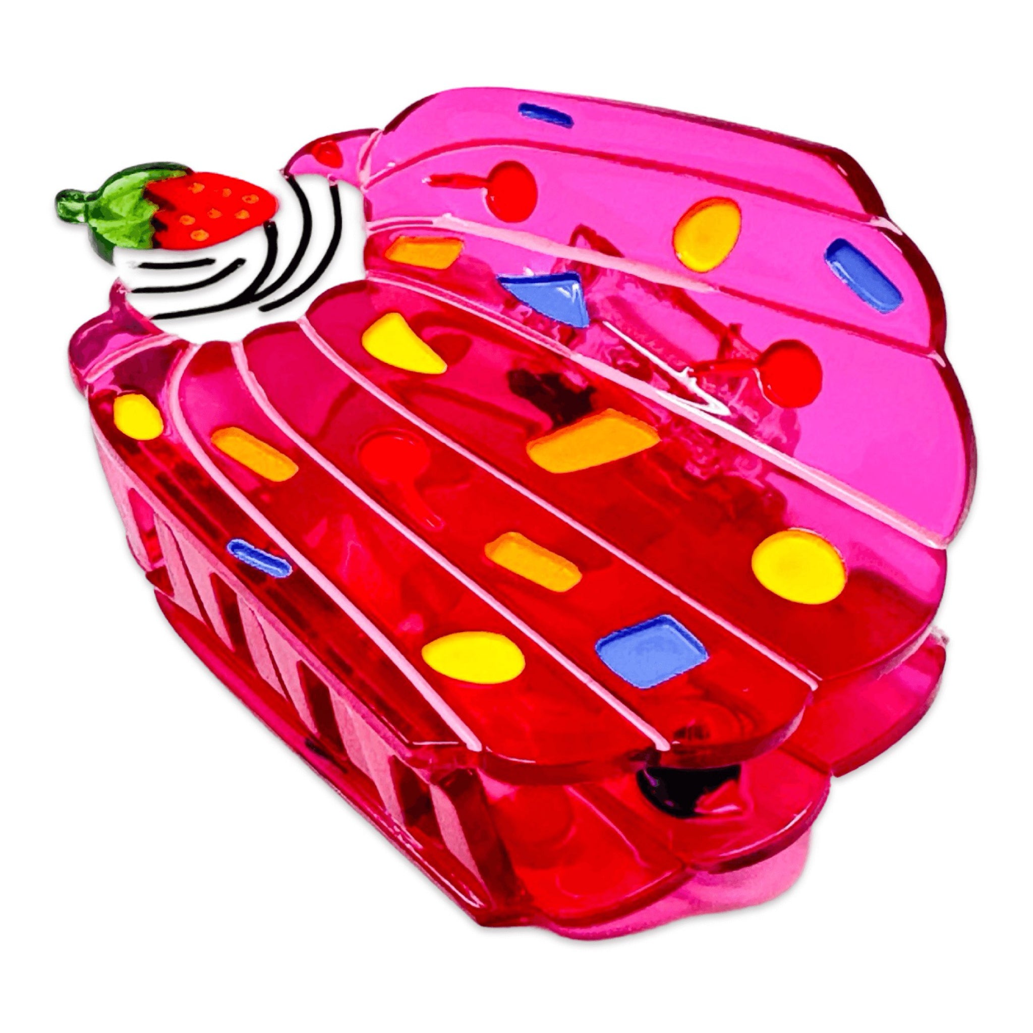 Add a little wiggle to any hairstyle with this jello-inspired hair claw, complete with whipped cream and a strawberry on top. A sweet, playful clip that brings instant dessert charm.