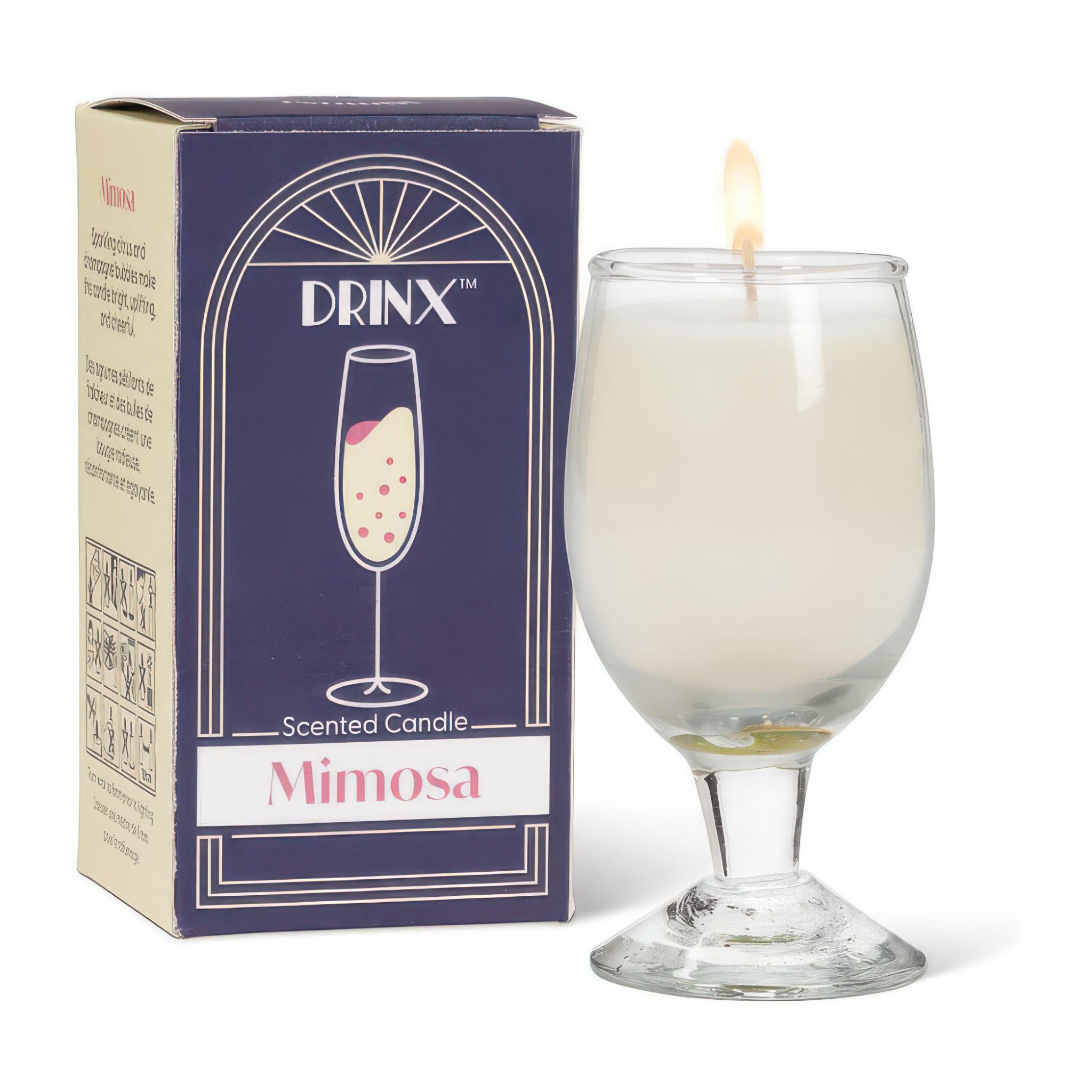This mimosa scented cocktail candle is poured into a mini wine glass for brunch inspired vibes. A playful table accent with fresh citrus notes and up to 12 hours of burn time, perfect for gifting or celebrations.