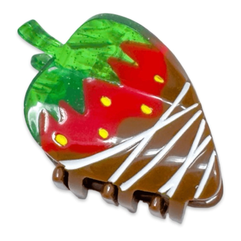 A tiny treat for your hair. This mini chocolate covered strawberry claw adds sweet Valentine vibes with glossy chocolate drizzle and a bright berry top.
