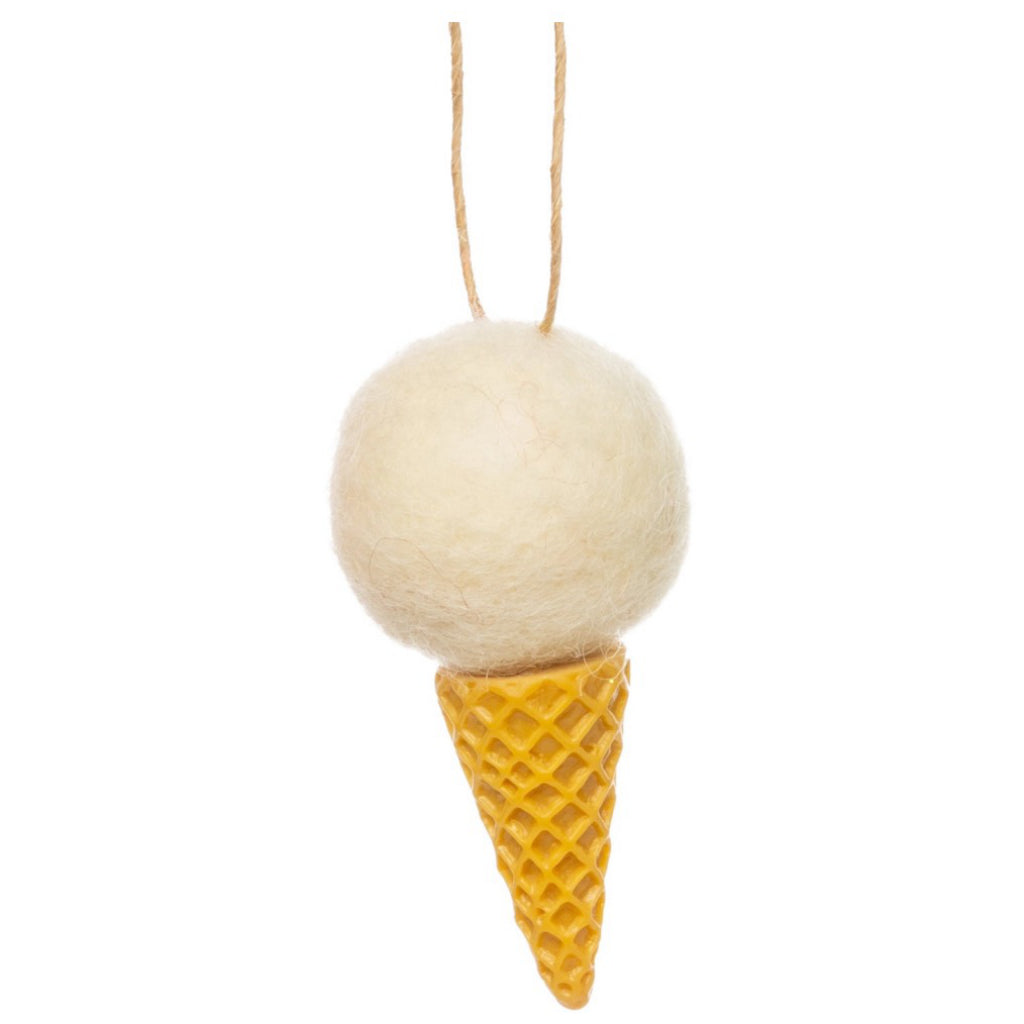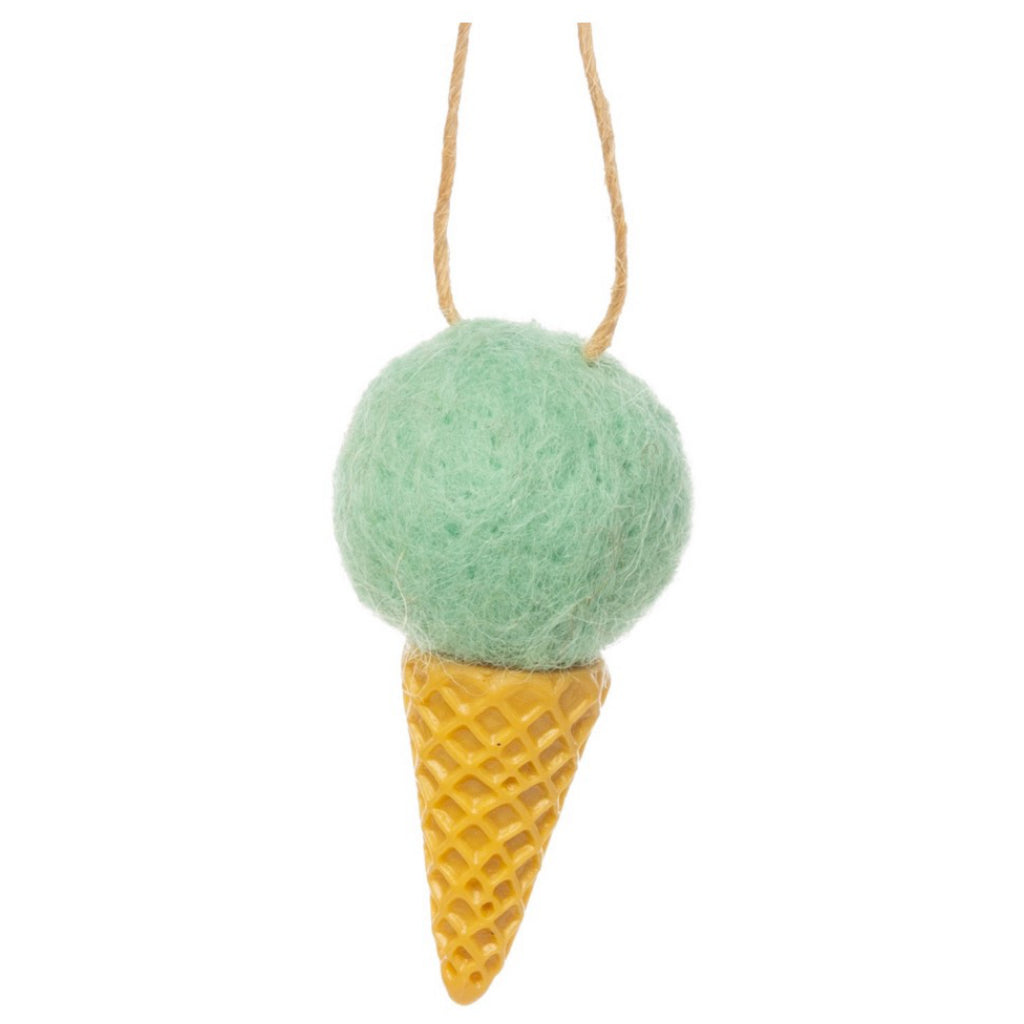 Sweeten up your tree with this mini felt ice cream cone ornament! Available in assorted colors, it’s the perfect playful touch for adding holiday cheer.