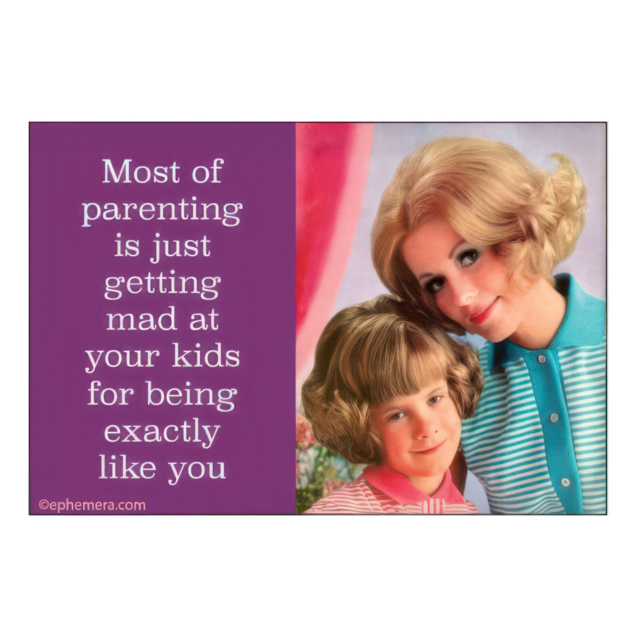 A funny rectangular magnet with a retro photo and a painfully true parenting quote, perfect for fridges, lockers, and survival humour.