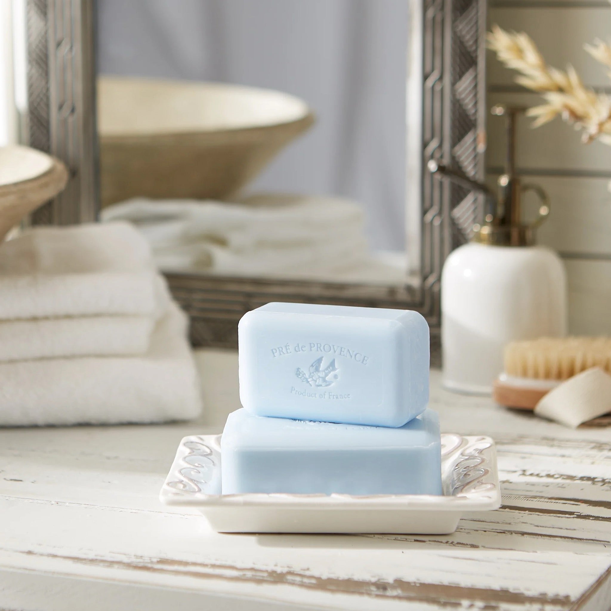 Ocean air French milled soap blends fresh ozonic and aquatic notes with green mossy woods, finished with nutmeg, ebony, and white musk. Quad milled and enriched with shea butter for a smooth, long lasting bar and rich lather.
