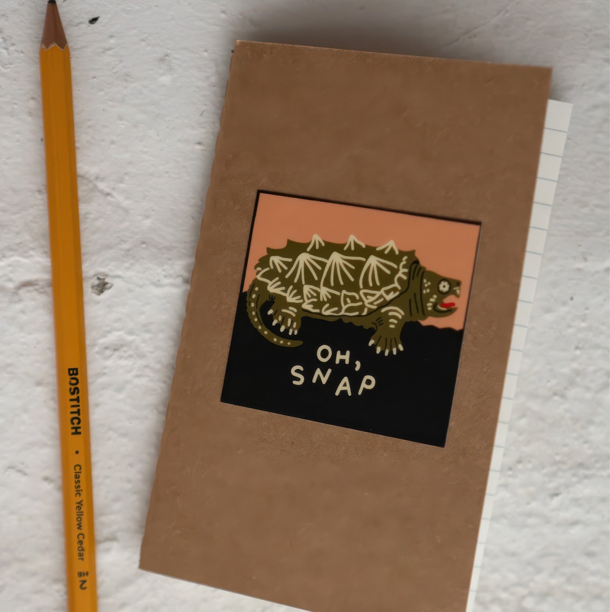 A playful “oh, snap” vinyl sticker featuring a funky turtle with big attitude. Perfect for water bottles, laptops, and anyone who loves a pun.