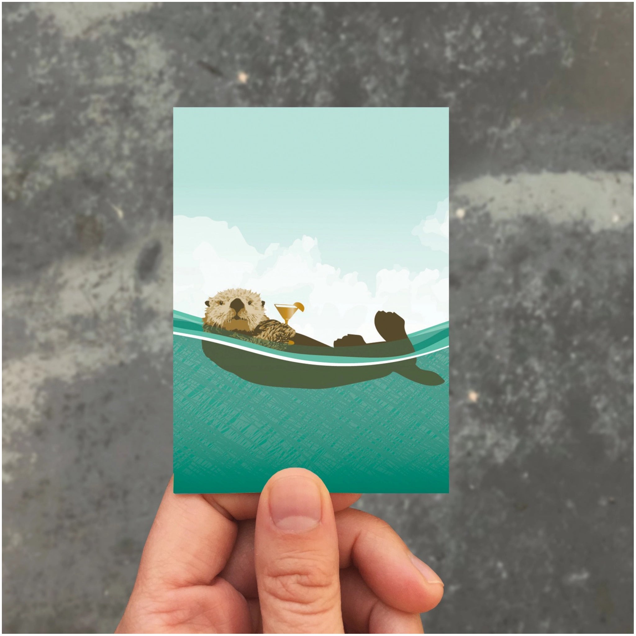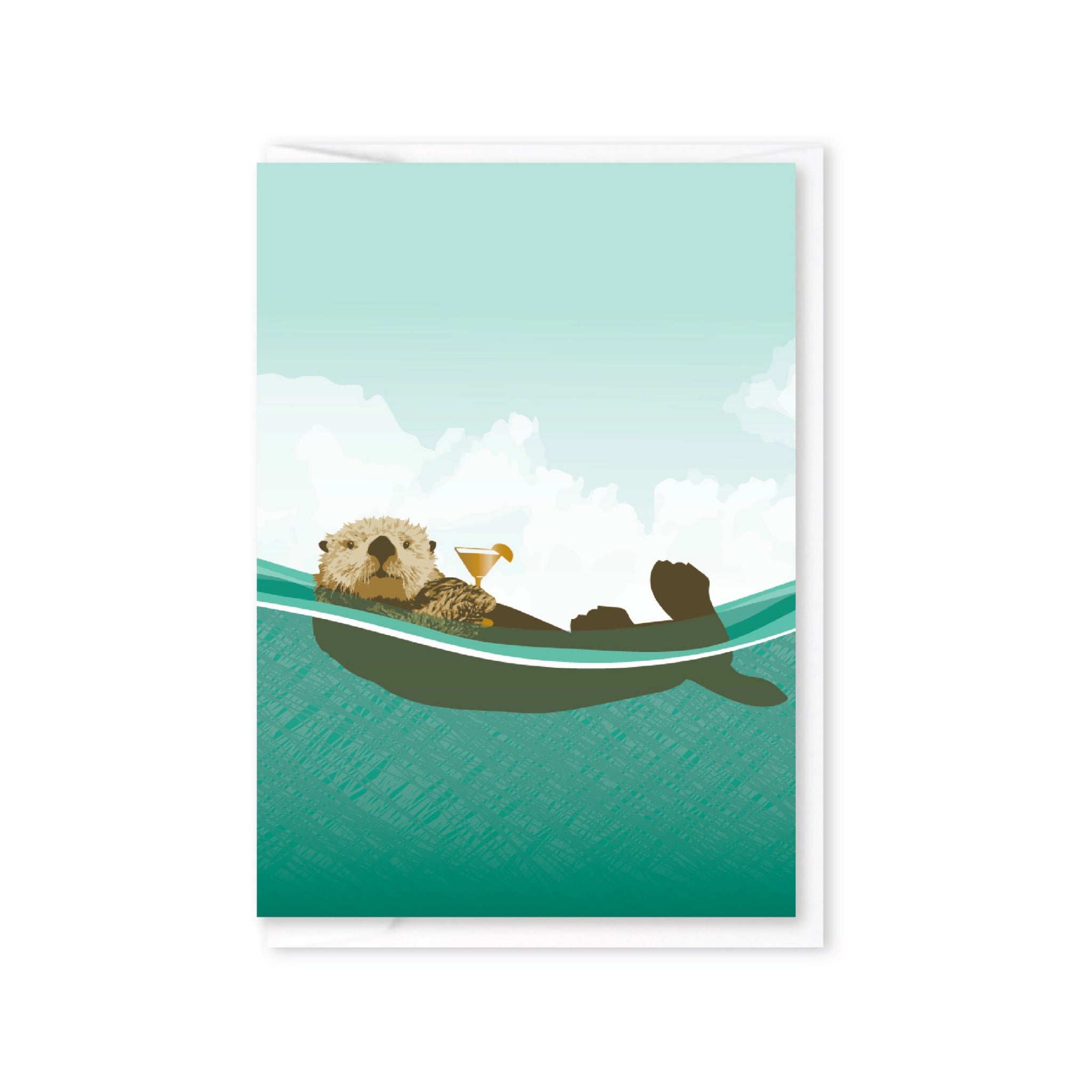 A mini enclosure card featuring a chill otter floating with a tiny cocktail, perfect for birthdays, celebrations, or a just because note.