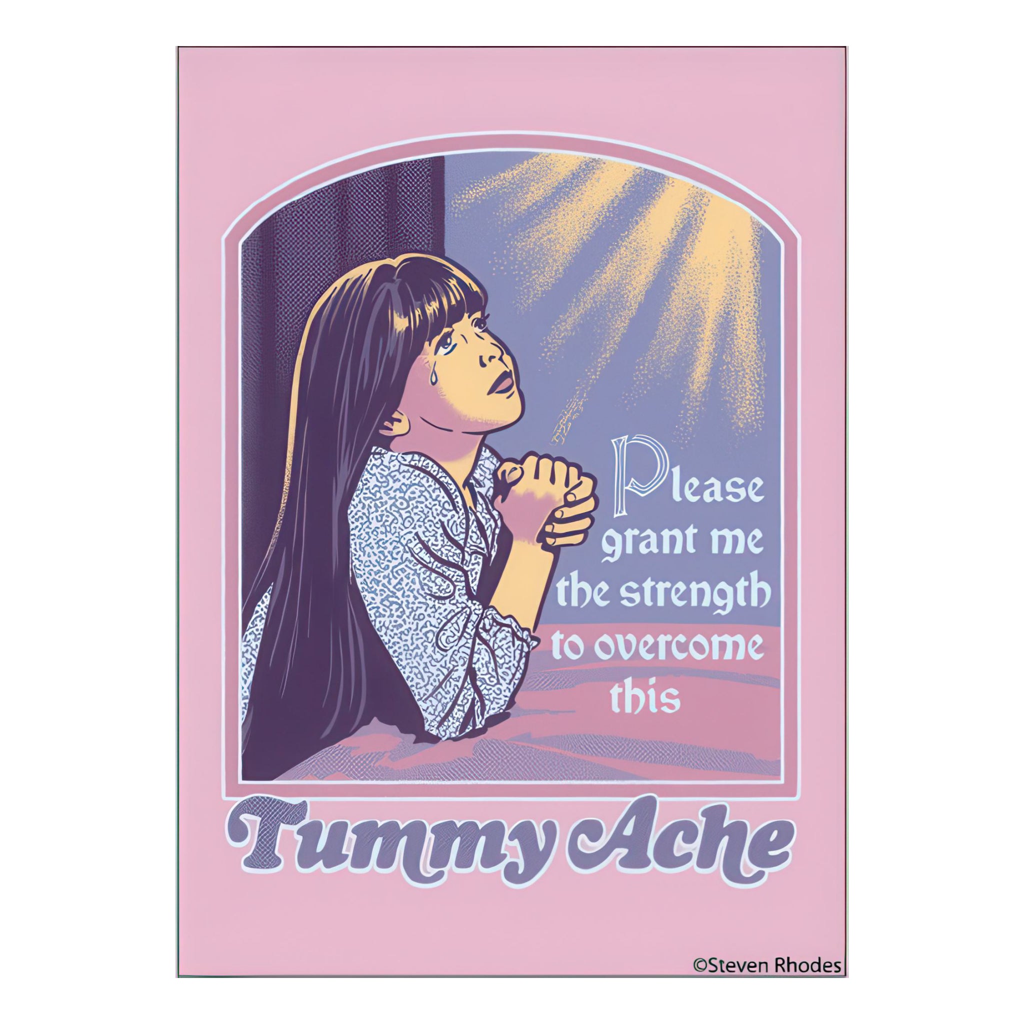 This rectangular magnet serves up a dramatic little prayer for tough days: “Please grant me the strength to overcome this tummyache.” Sarcastic, funny, and perfect for adding personality to a fridge or locker.