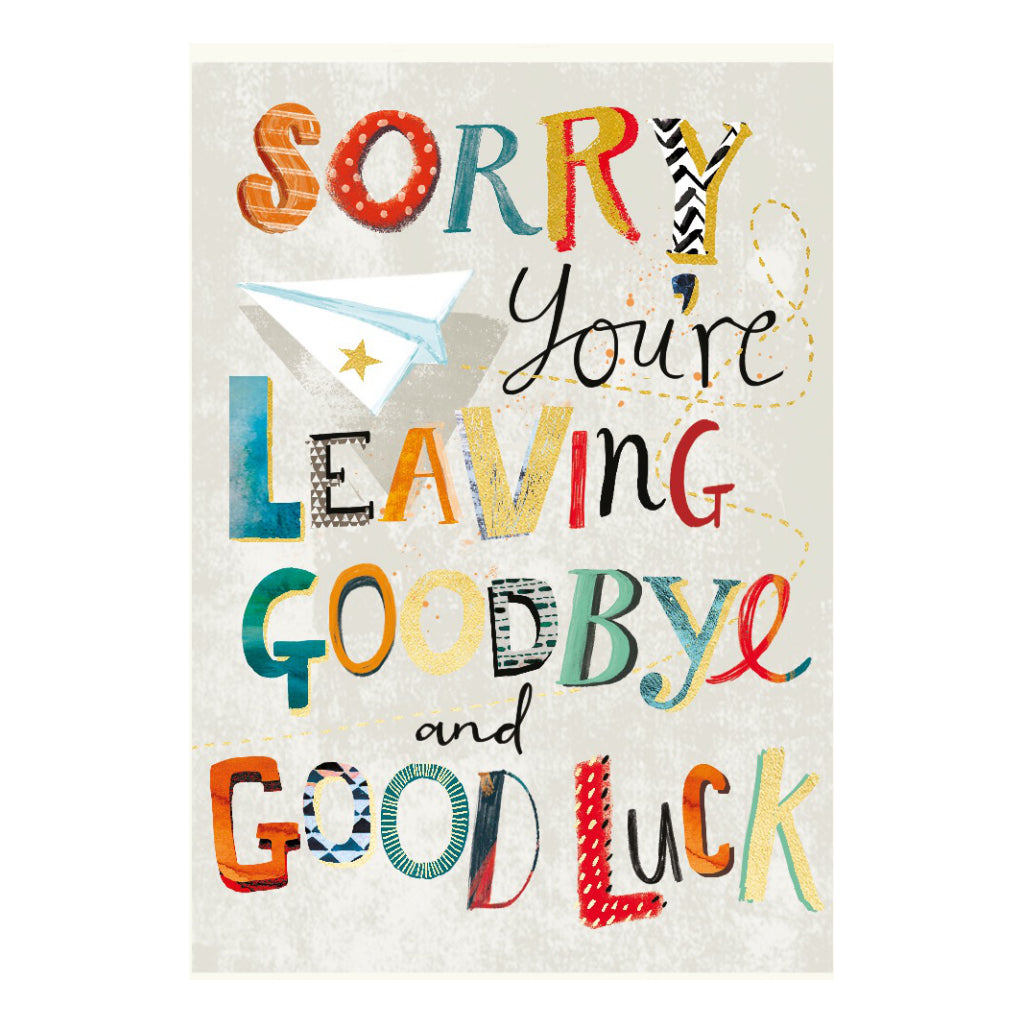 Send them off with a smile with this colorful paper airplane goodbye card featuring playful lettering and a heartfelt message. A cheerful way to wish someone well on their next adventure.