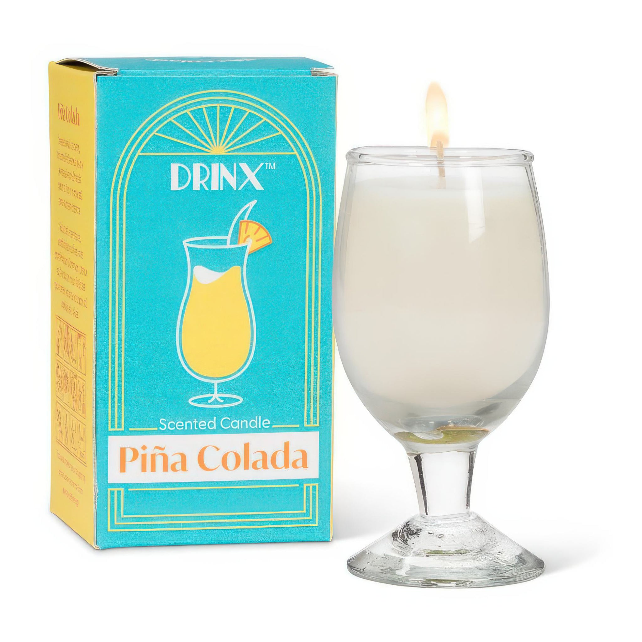 This piña colada scented candle is poured into a mini cocktail glass for instant party vibes. A fun little table accent with 12+ hours of burn time and tropical scent.