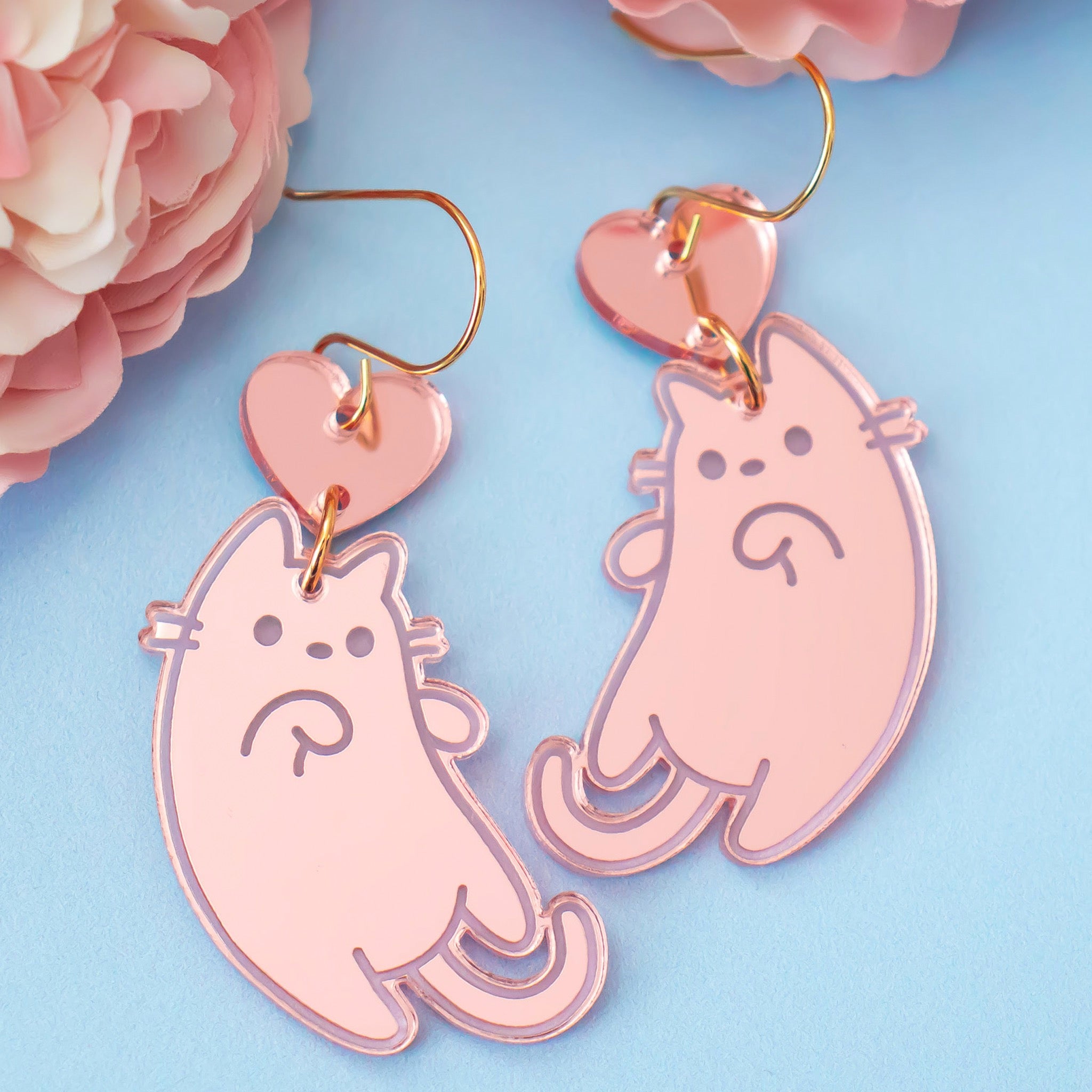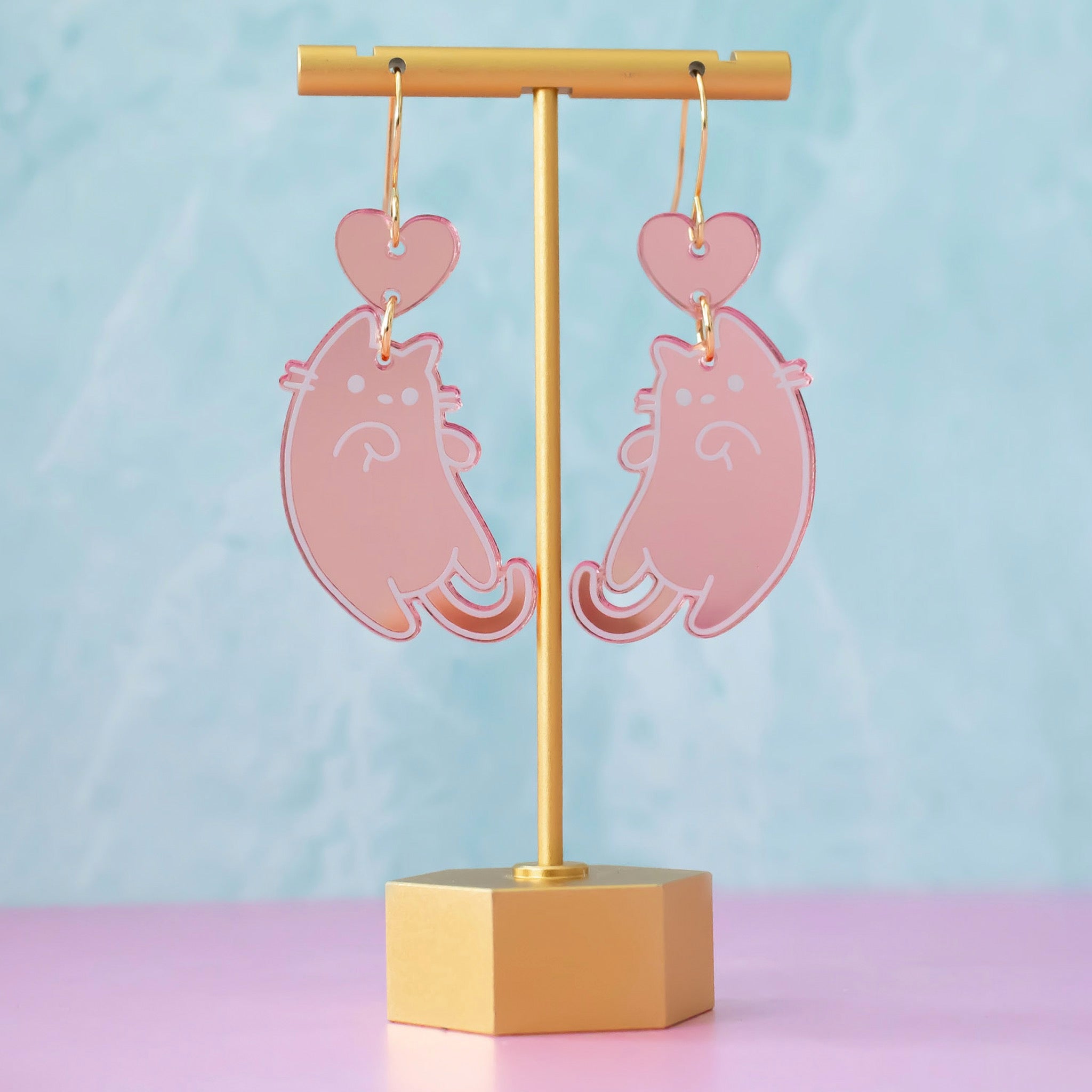 Playful and full of personality, these pink cat and heart earrings add a sweet, quirky touch with lightweight mirror acrylic that’s easy to wear all day.
