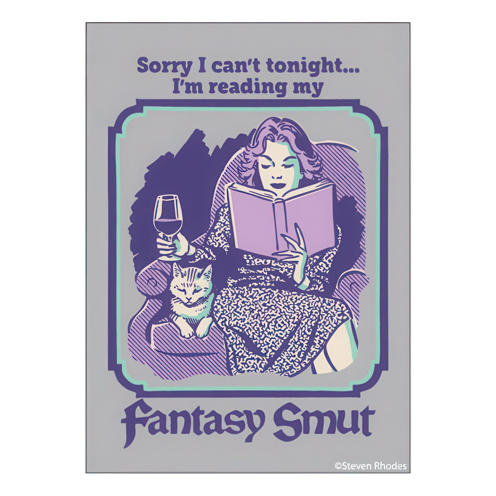 A cheeky rectangular magnet celebrating cozy nights in with books, wine, and zero plans, perfect for fridges, lockers, and unapologetic readers.